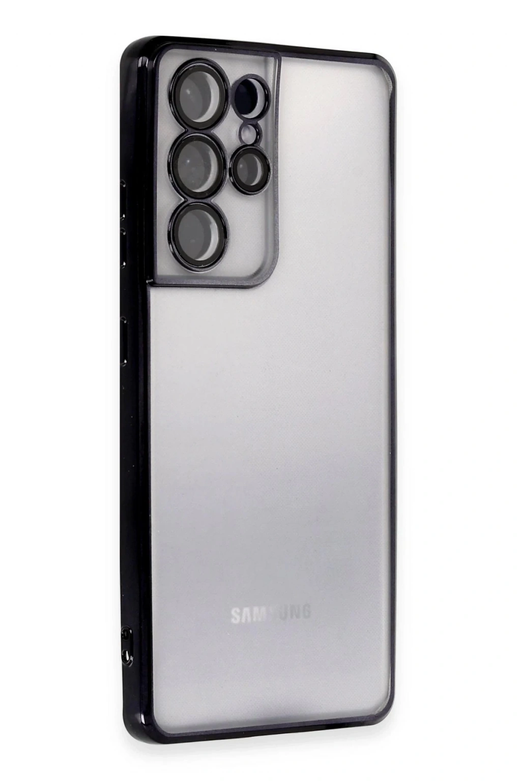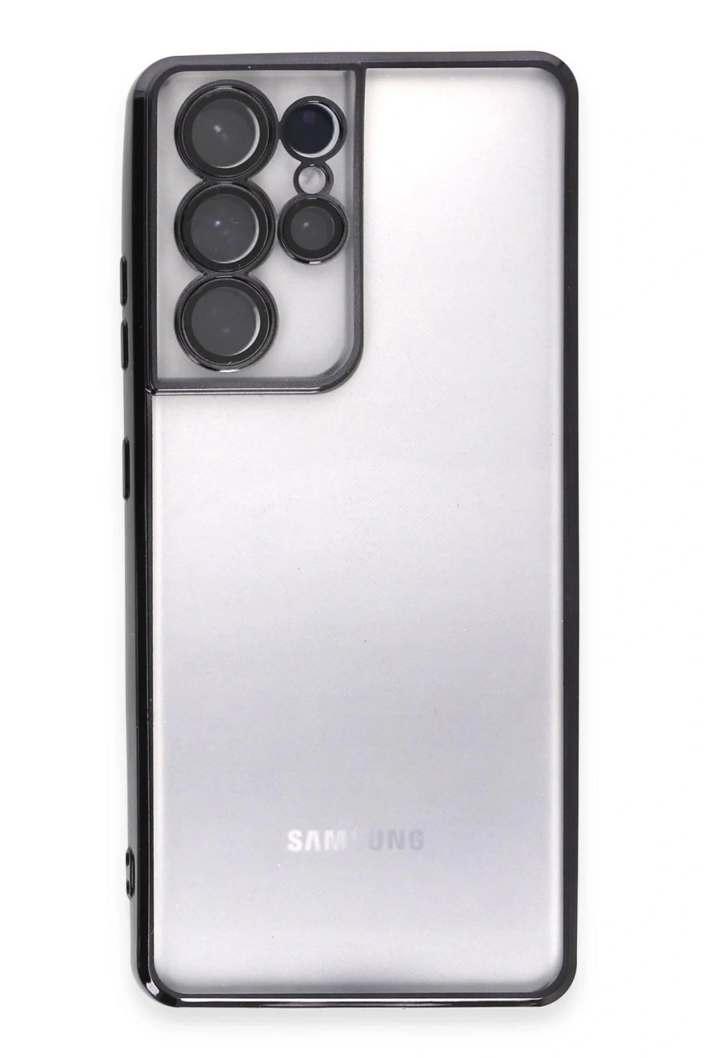 Newface Samsung Galaxy S21 Ultra Kılıf Razer Lensli Silikon - Siyah