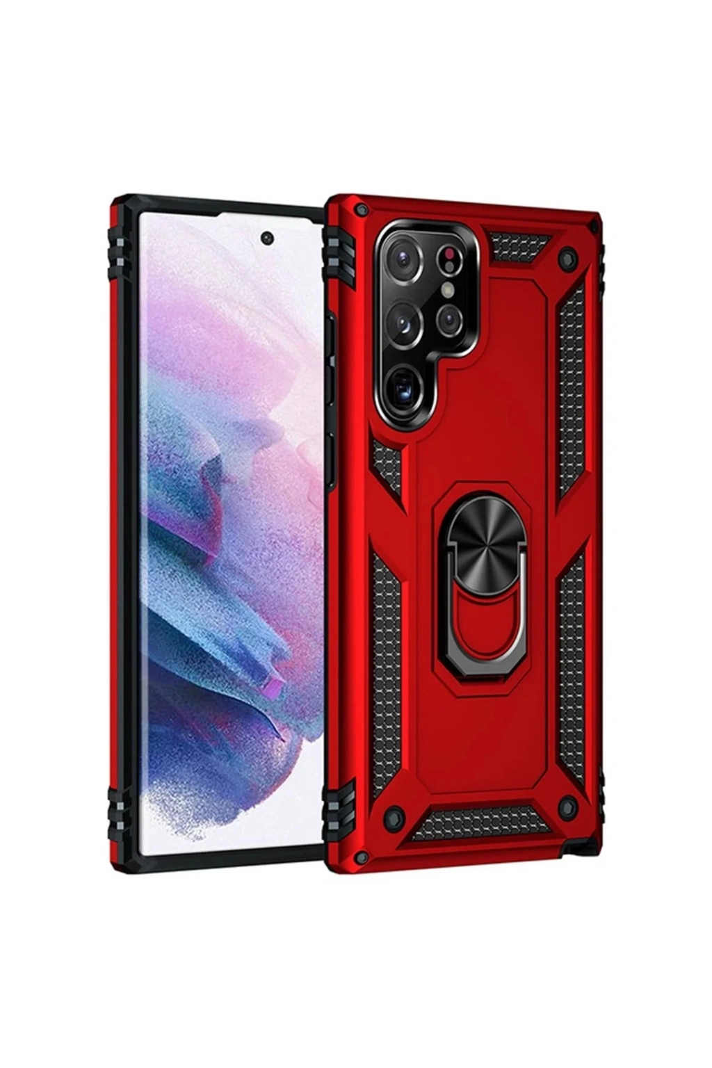 Newface Samsung Galaxy S21 Ultra Kılıf Sofya Yüzüklü Silikon Kapak - Kırmızı