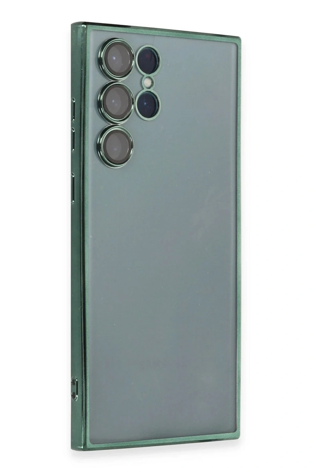Newface Samsung Galaxy S22 Ultra Kılıf Razer Lensli Silikon - Yeşil