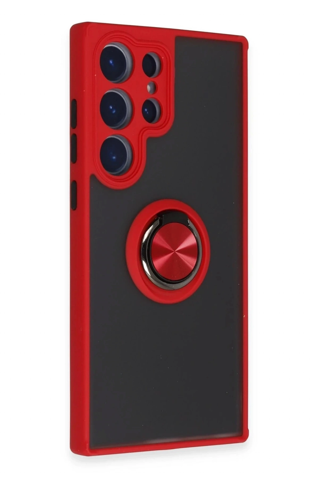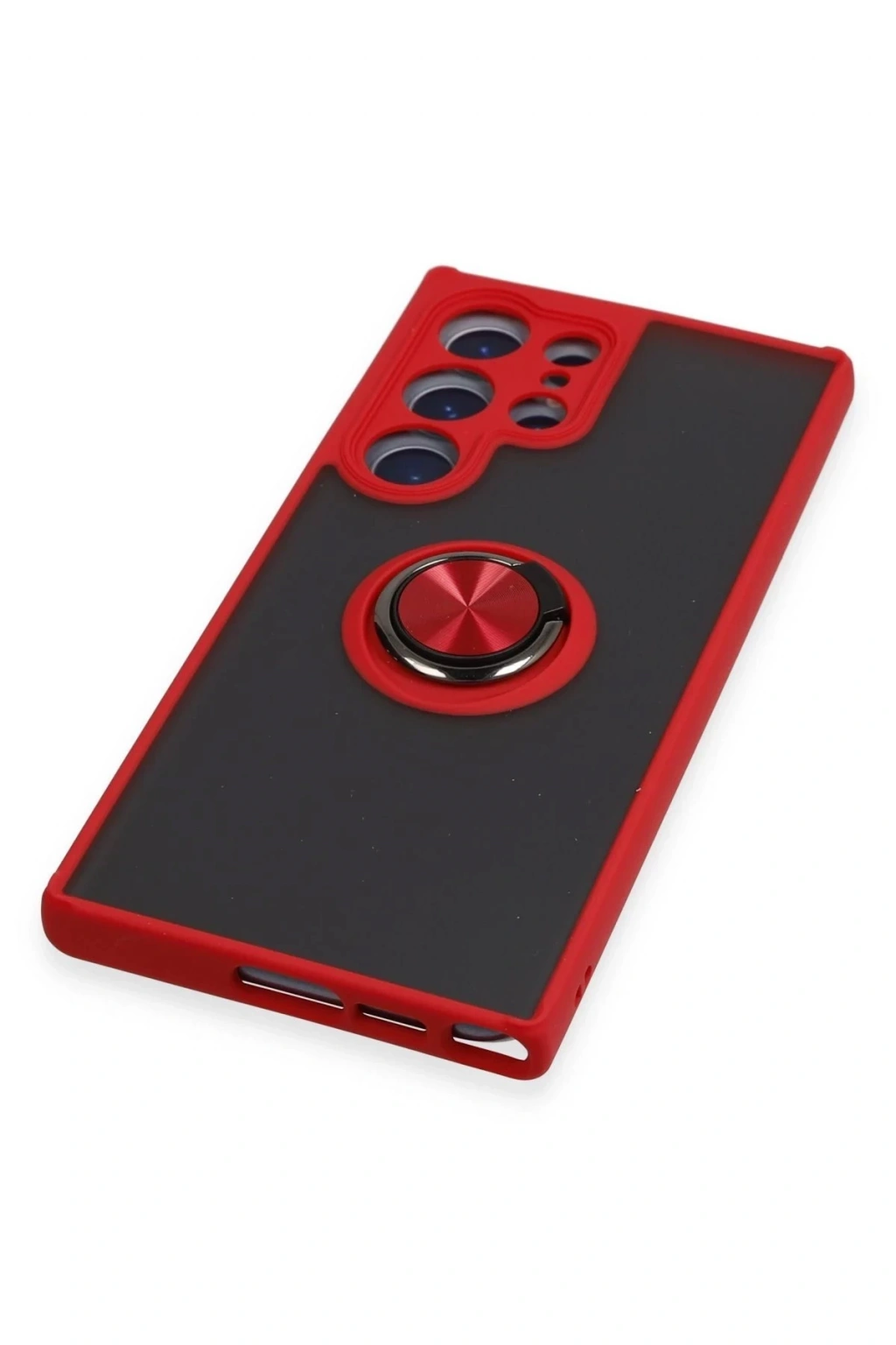 Newface Samsung Galaxy S23 Ultra Kılıf Montreal Yüzüklü Silikon Kapak - Kırmızı