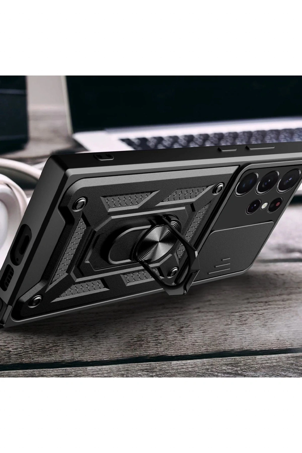 Newface Samsung Galaxy S23 Ultra Kılıf Pars Lens Yüzüklü Silikon - Kırmızı