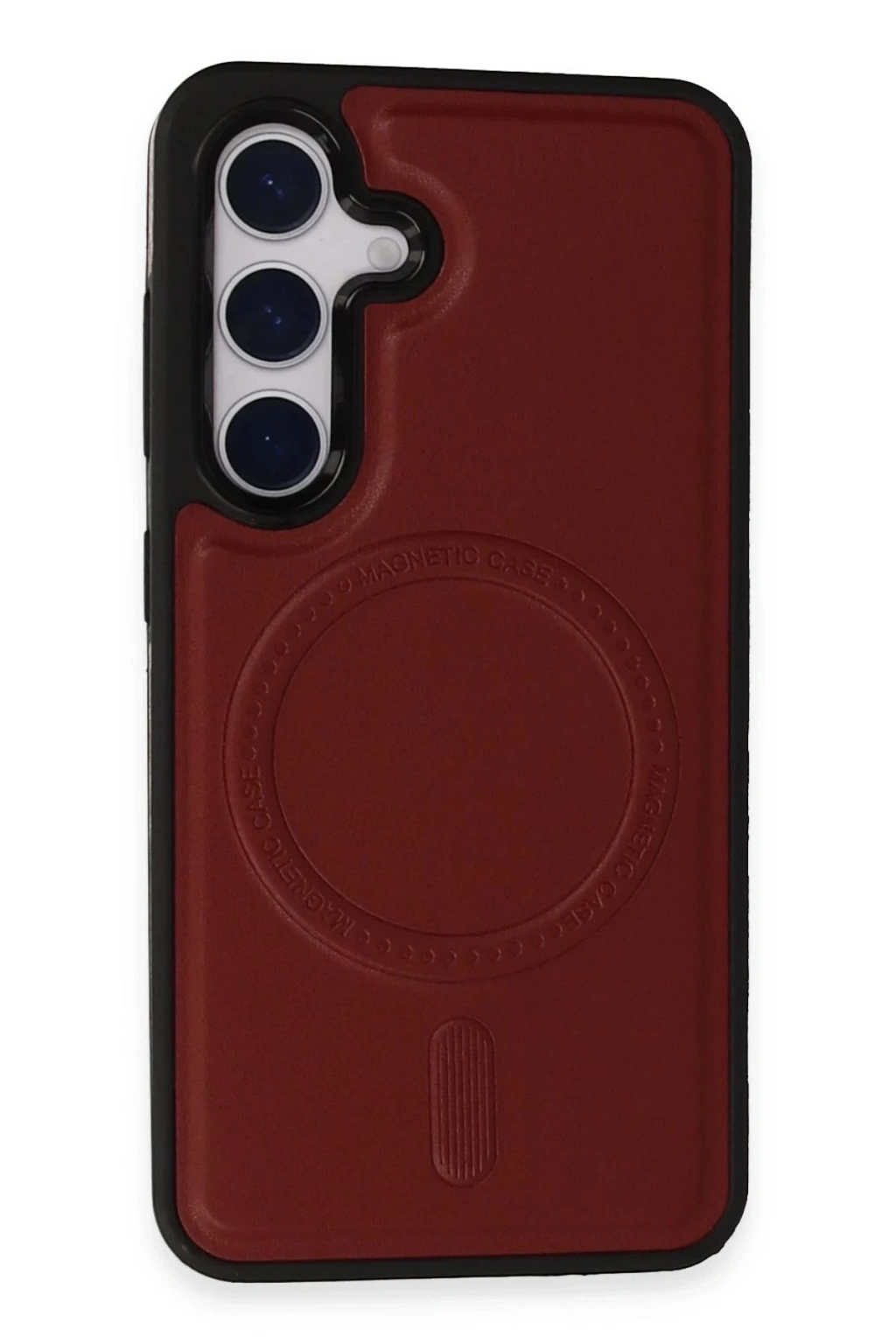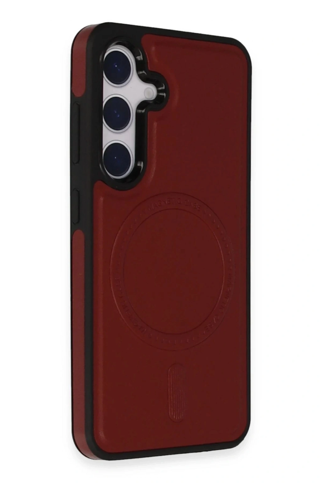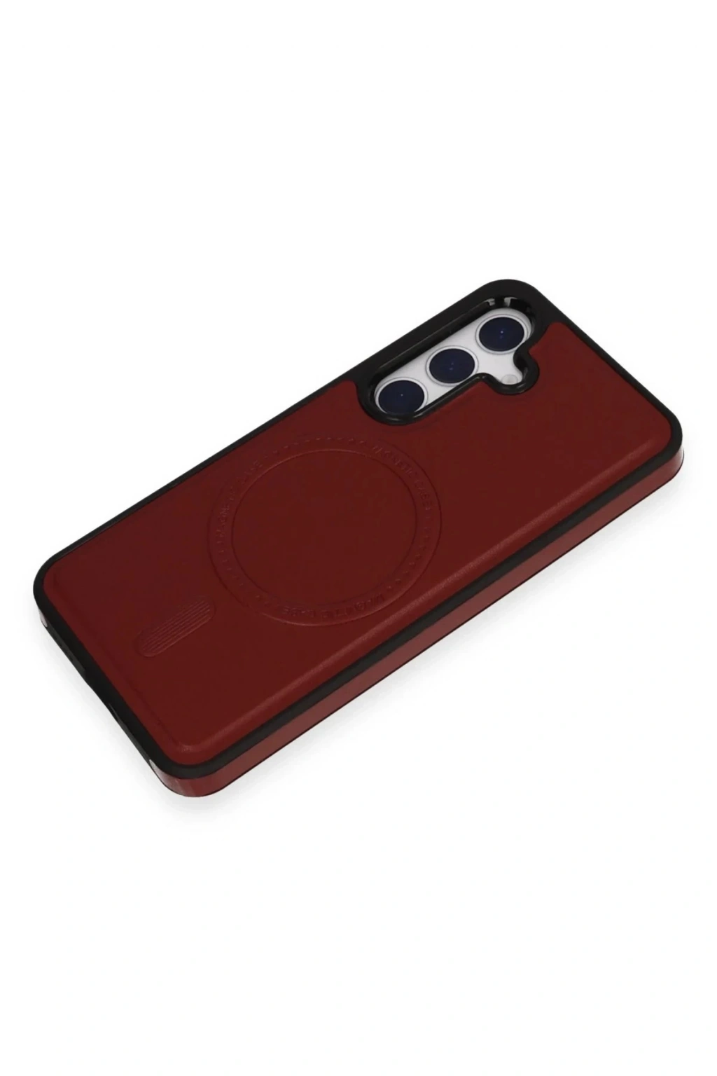 Newface Samsung Galaxy S24 Kılıf Ozzi Magsafe Deri Kapak - Kırmızı