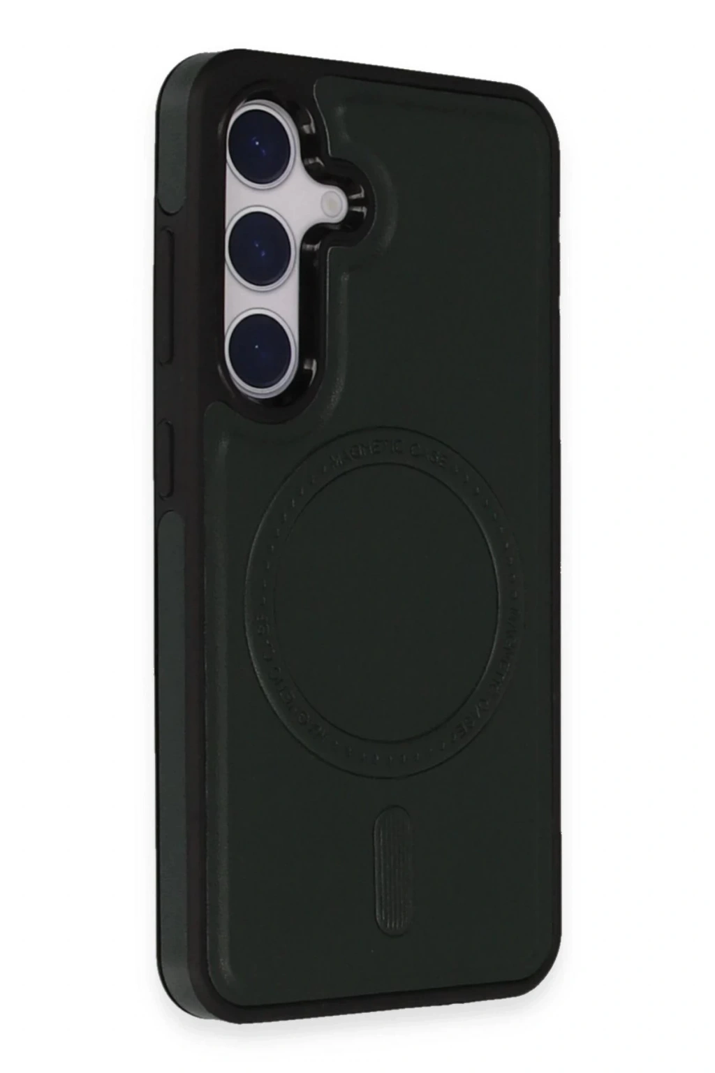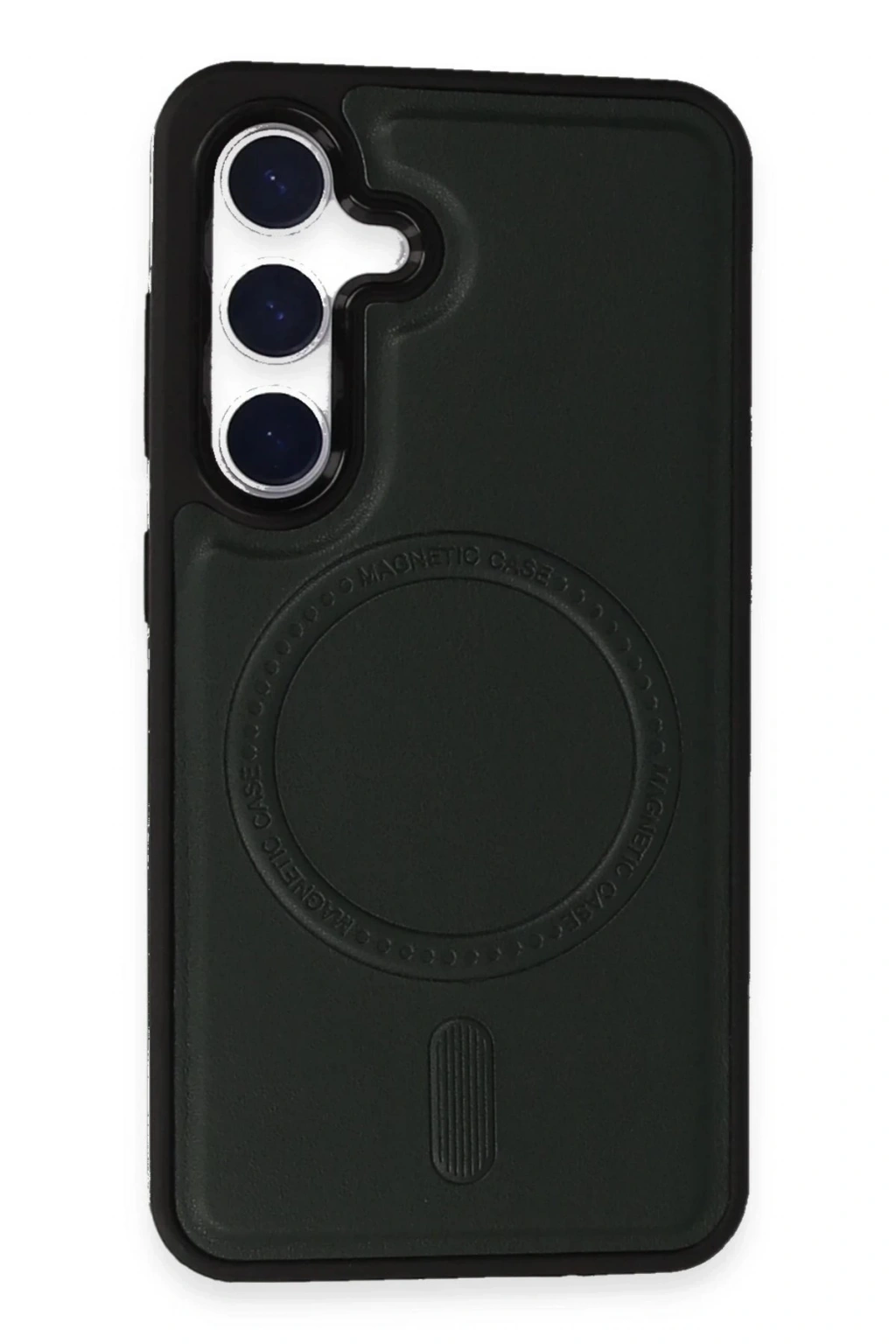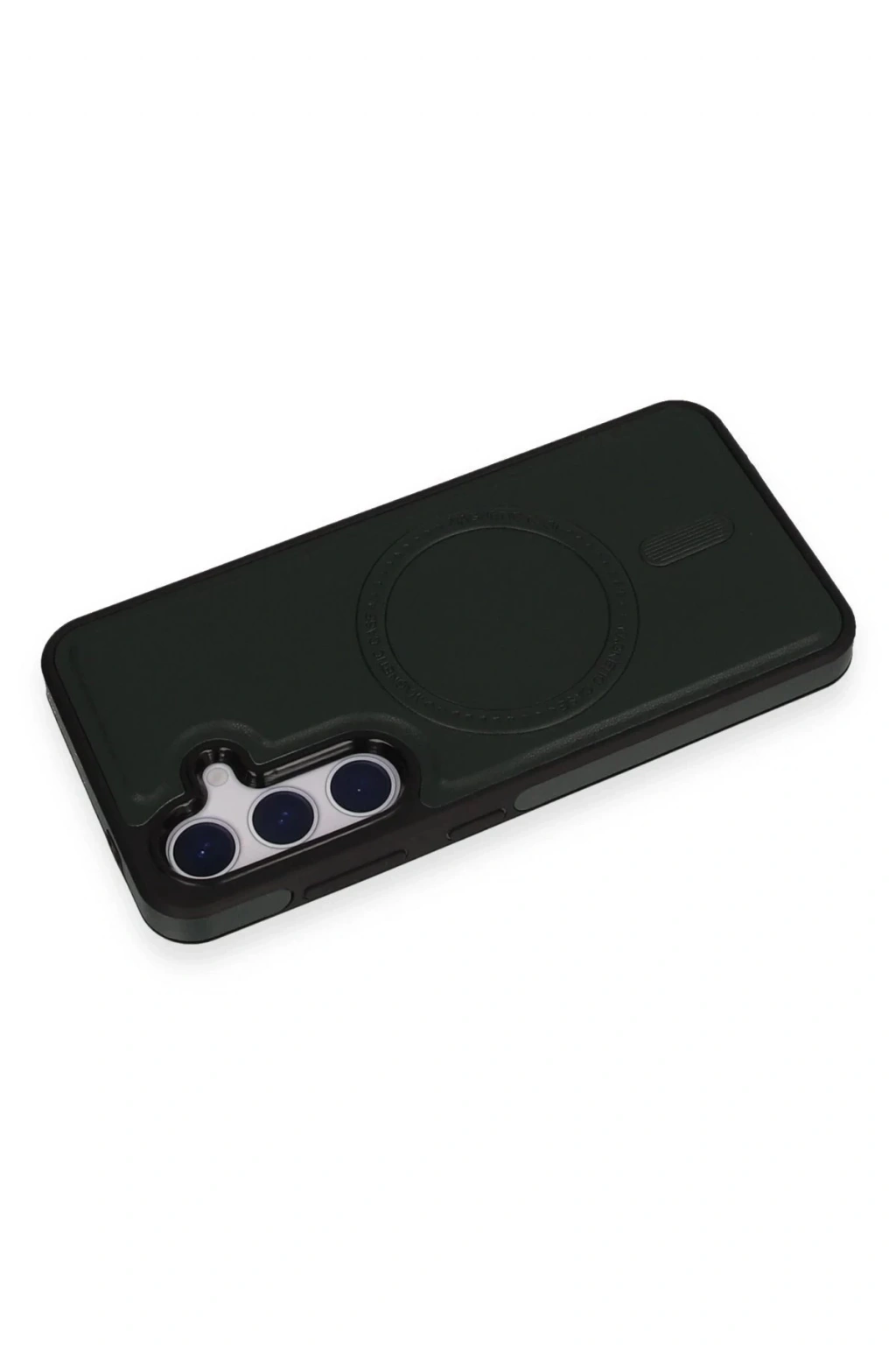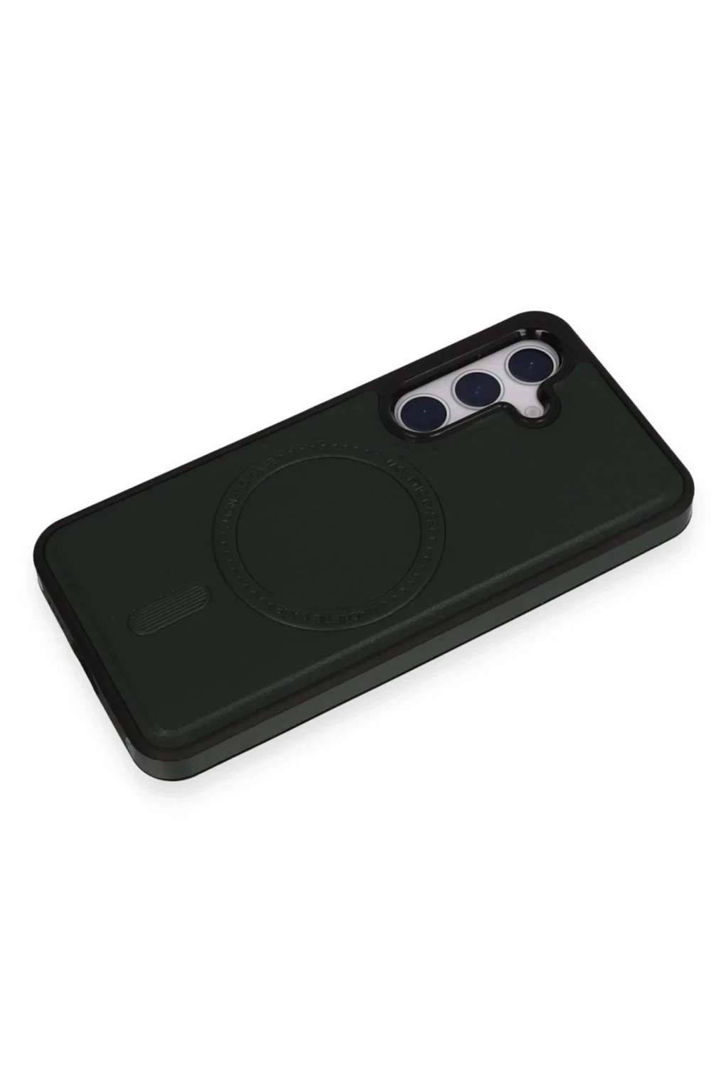 Newface Samsung Galaxy S24 Kılıf Ozzi Magsafe Deri Kapak - Koyu Yeşil