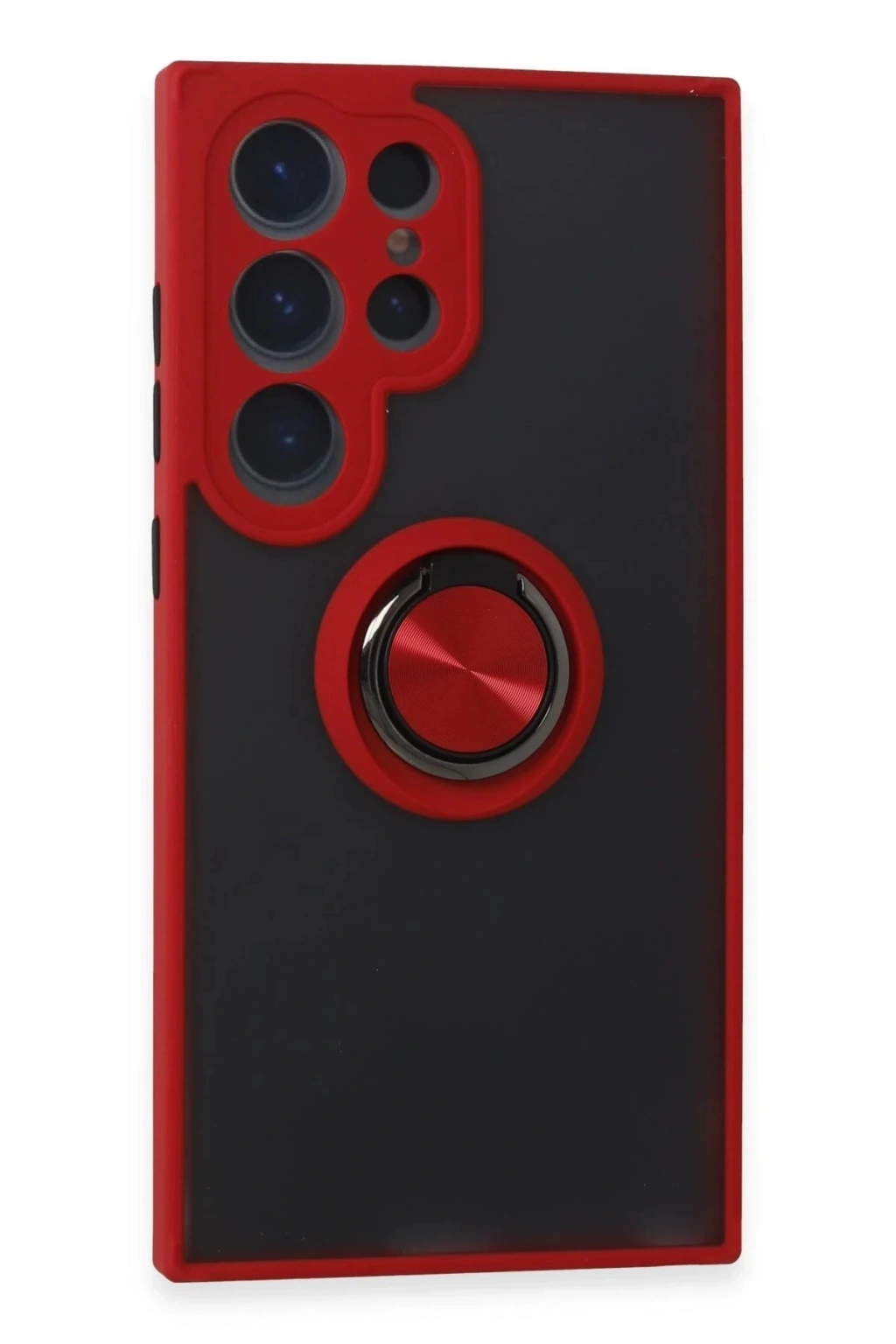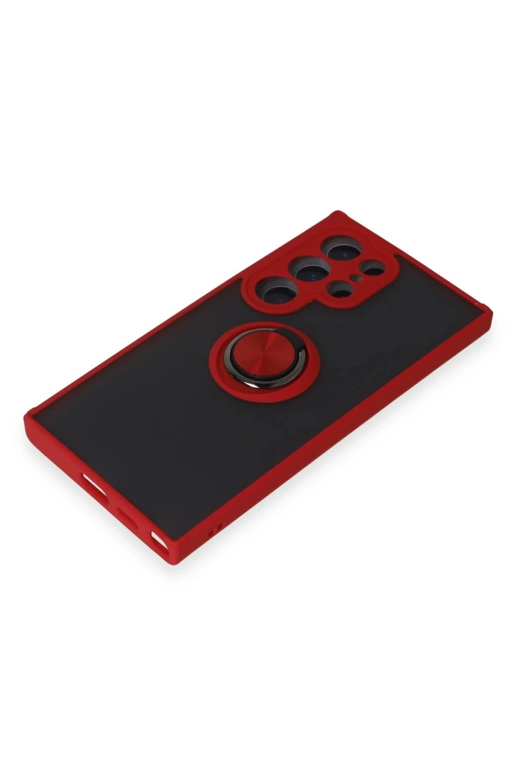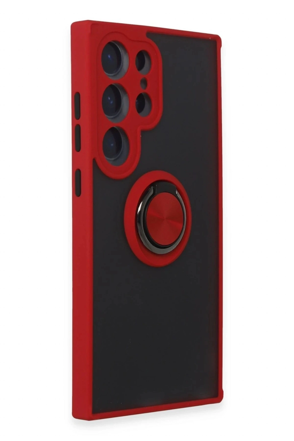 Newface Samsung Galaxy S24 Ultra Kılıf Montreal Yüzüklü Silikon Kapak - Kırmızı