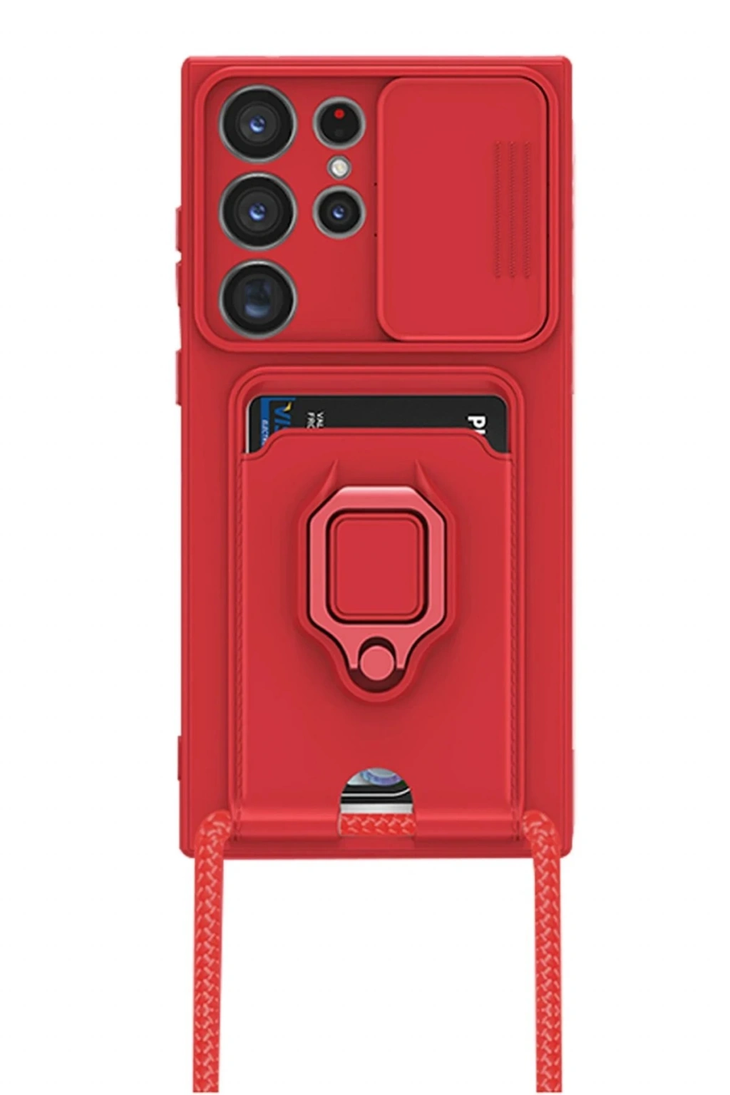 Newface Samsung Galaxy S24 Ultra Kılıf Zuma Kartvizitli Yüzüklü Silikon - Kırmızı