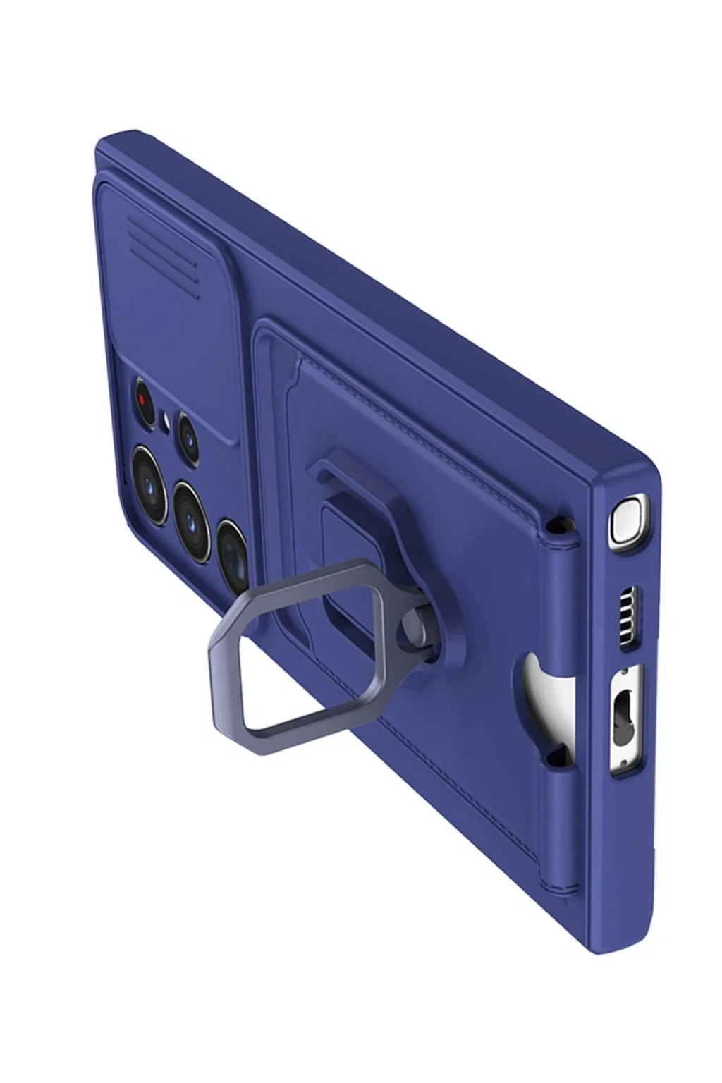 Newface Samsung Galaxy S24 Ultra Kılıf Zuma Kartvizitli Yüzüklü Silikon - Lacivert