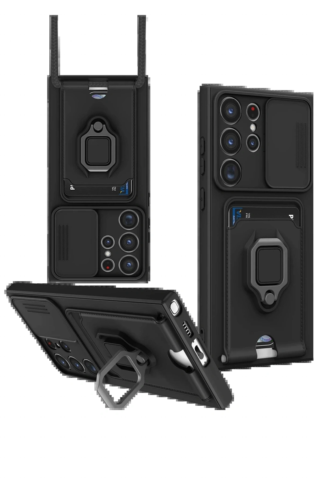 Newface Samsung Galaxy S25 Ultra Kılıf Zuma Kartvizitli Yüzüklü Silikon - Siyah