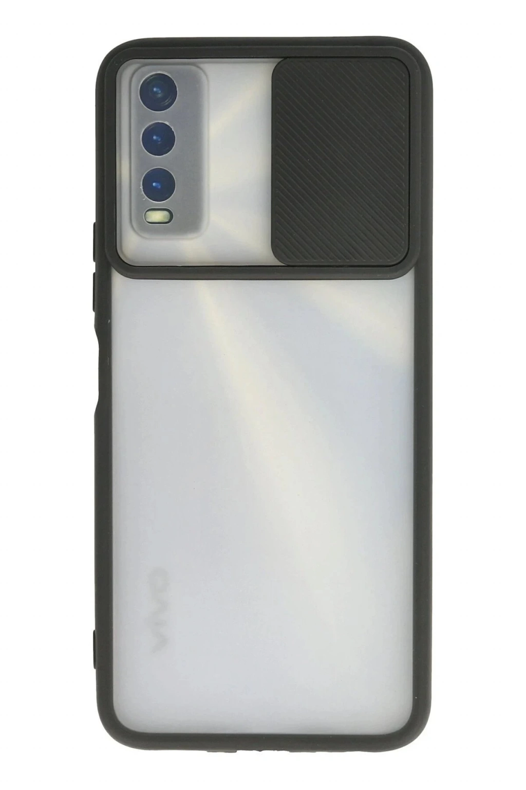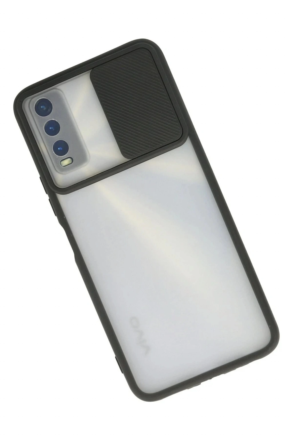 Newface Vivo Y11S Kılıf Palm Buzlu Kamera Sürgülü Silikon - Siyah
