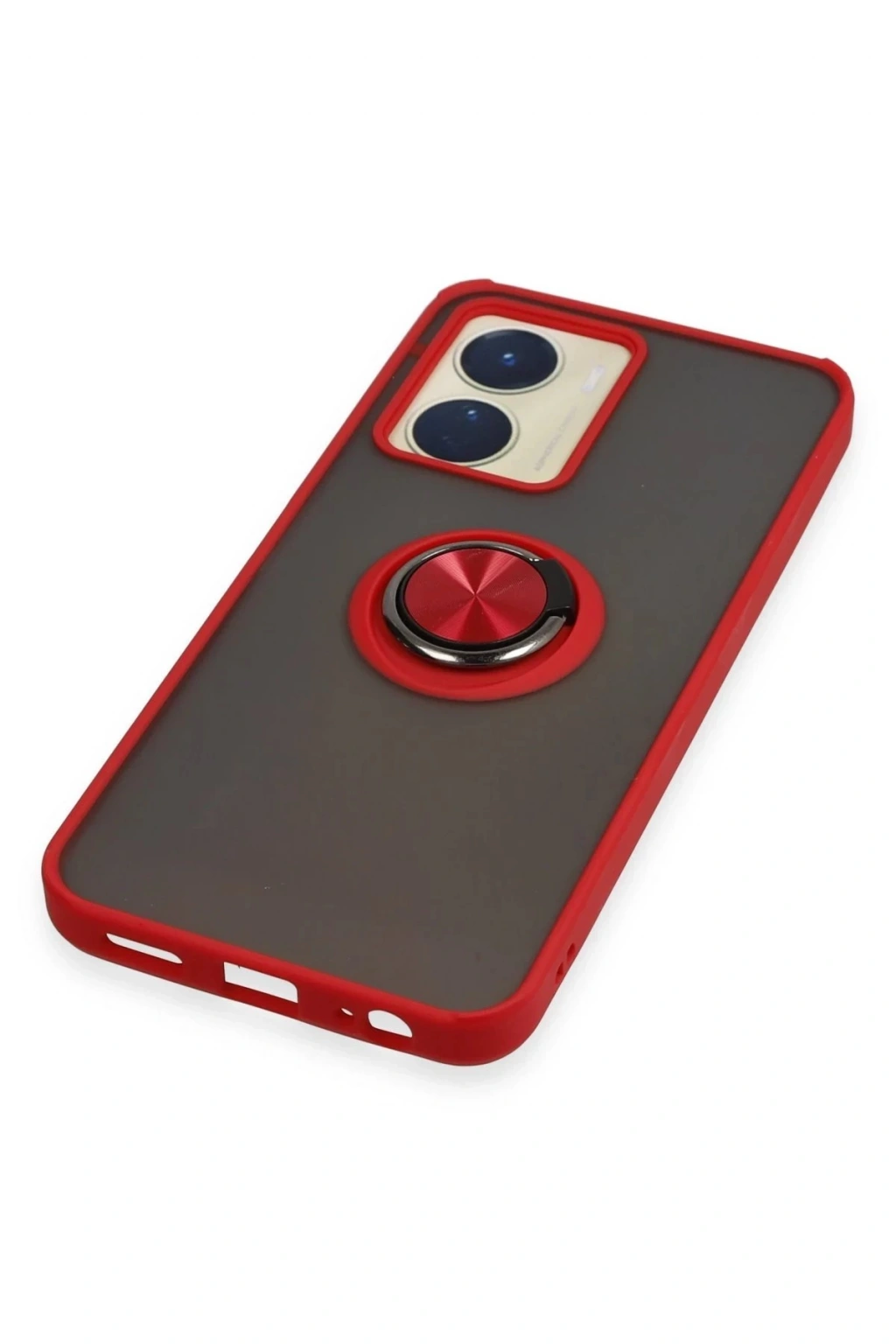 Newface Vivo Y16 Kılıf Montreal Yüzüklü Silikon Kapak - Kırmızı