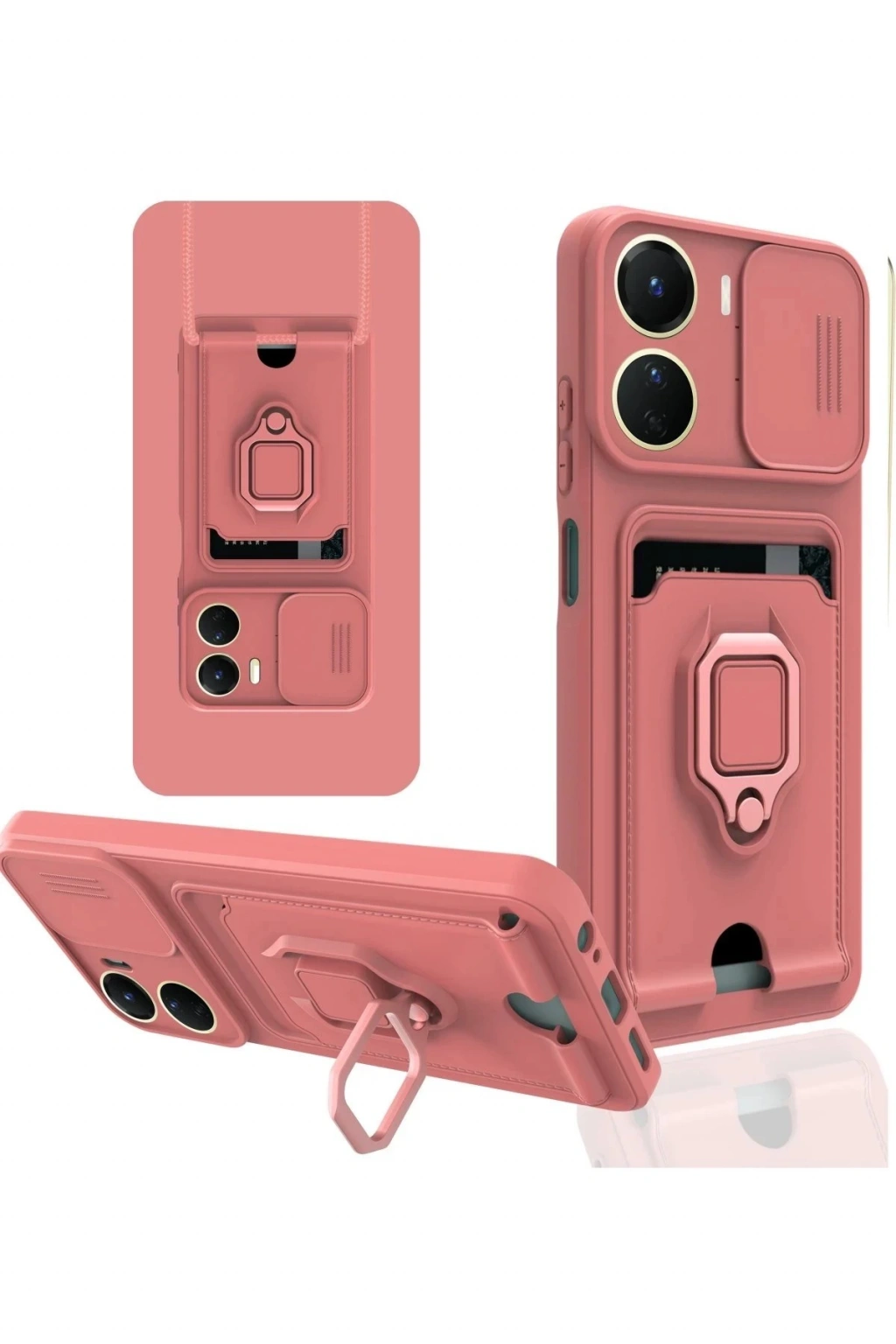 Newface Vivo Y16 Kılıf Zuma Kartvizitli Yüzüklü Silikon - Pembe