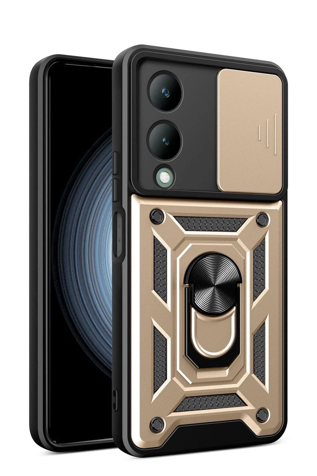 Newface Vivo Y17S Kılıf Pars Lens Yüzüklü Silikon - Gold