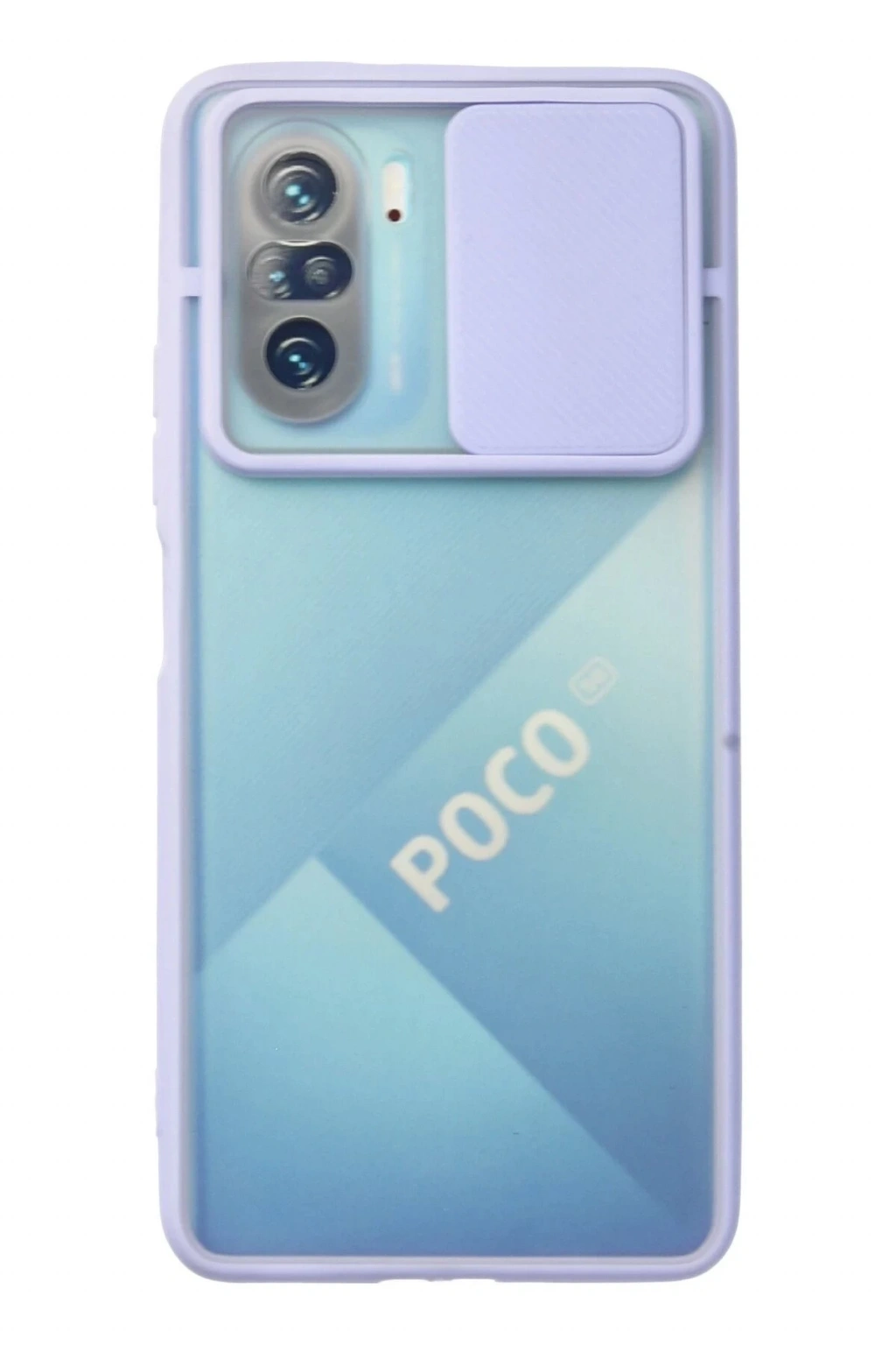 Newface Xiaomi Poco F3 Kılıf Palm Buzlu Kamera Sürgülü Silikon - Lila