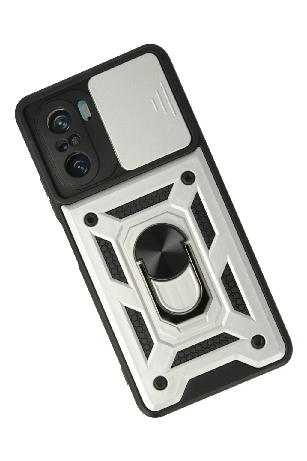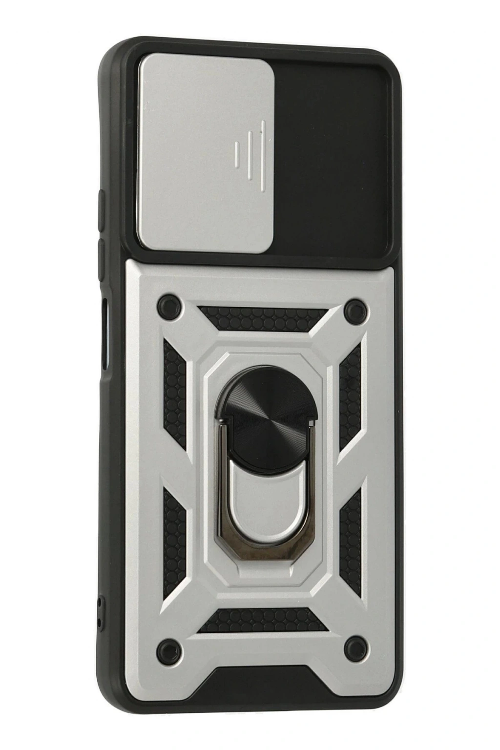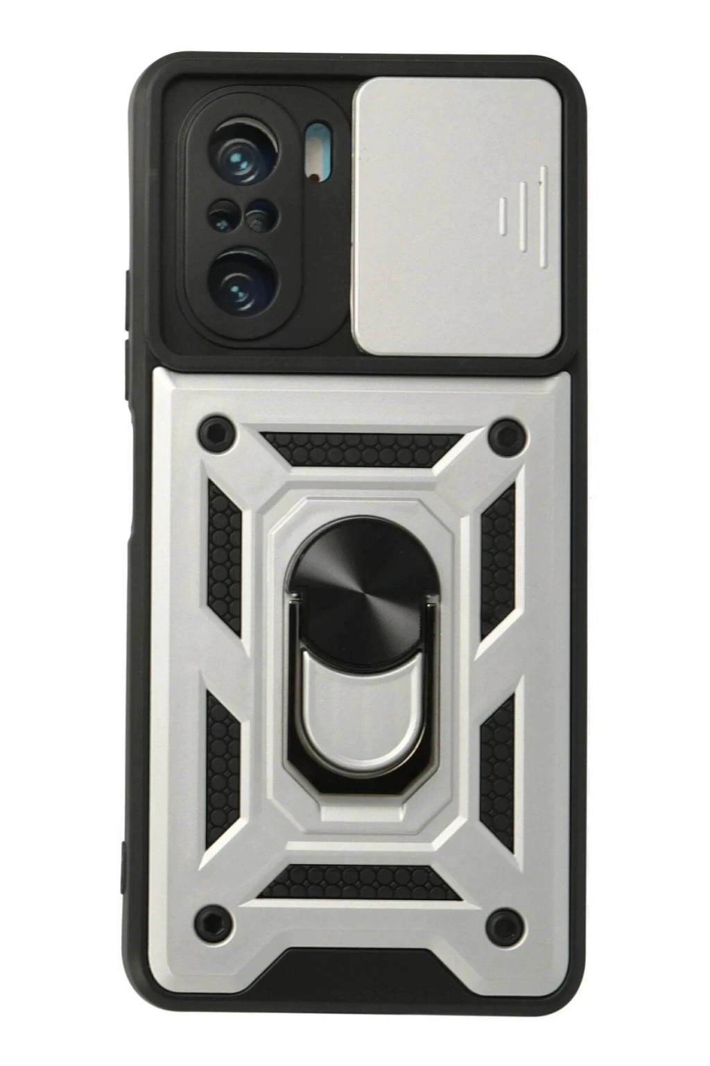 Newface Xiaomi Poco F3 Kılıf Pars Lens Yüzüklü Silikon - Gümüş