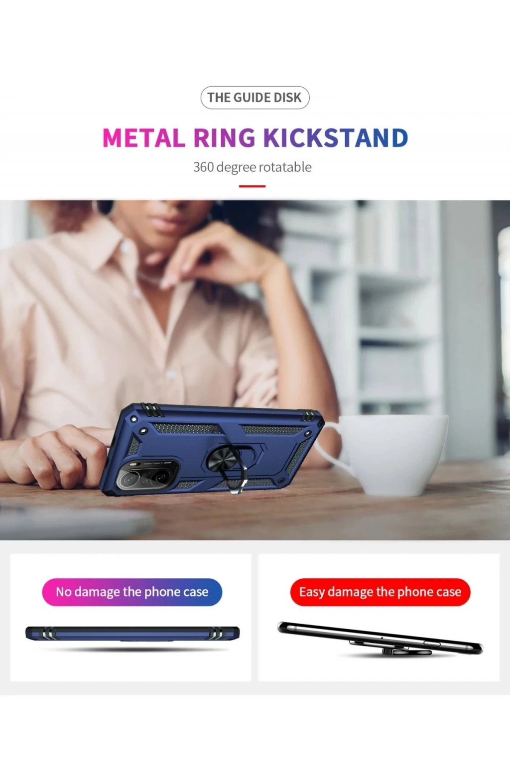 Newface Xiaomi Poco F3 Kılıf Sofya Yüzüklü Silikon Kapak - Lacivert