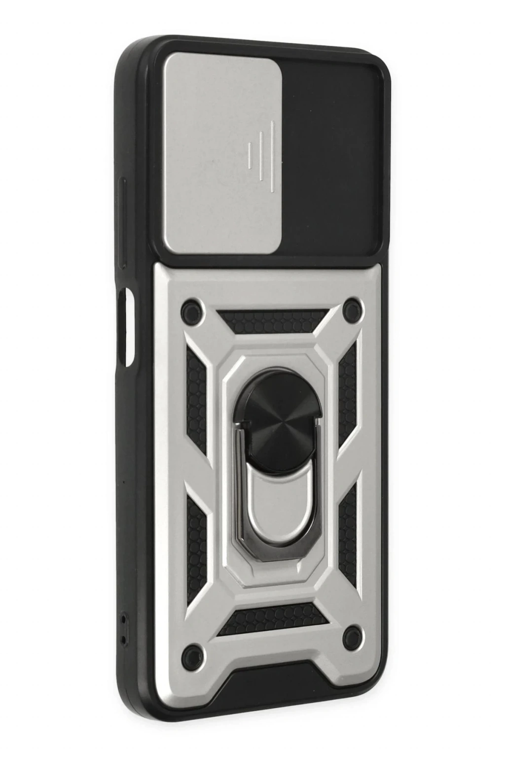 Newface Xiaomi Poco M5 Kılıf Pars Lens Yüzüklü Silikon - Gümüş