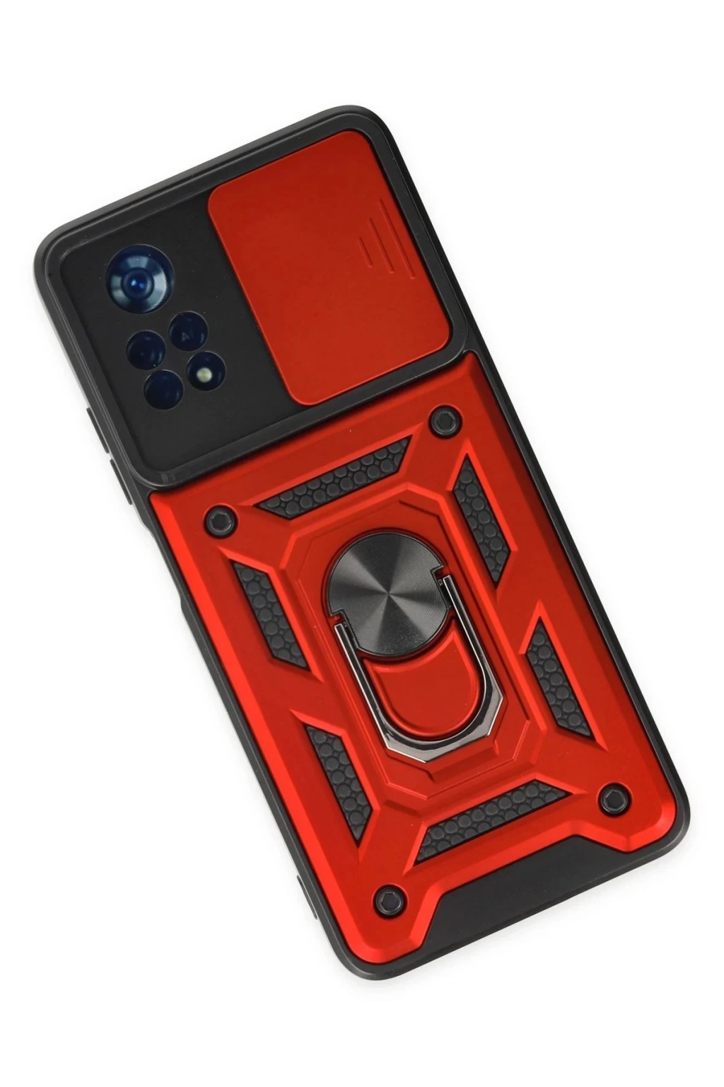 Newface Xiaomi Poco X4 Pro 5G Kılıf Pars Lens Yüzüklü Silikon - Kırmızı