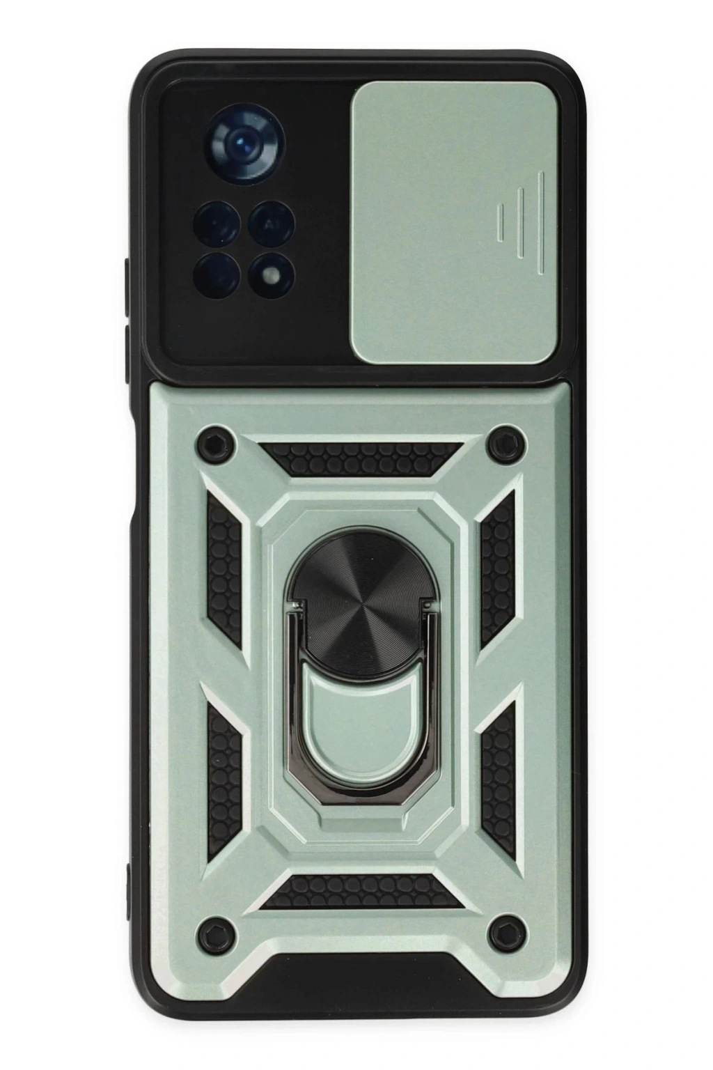 Newface Xiaomi Poco X4 Pro 5G Kılıf Pars Lens Yüzüklü Silikon - Yeşil