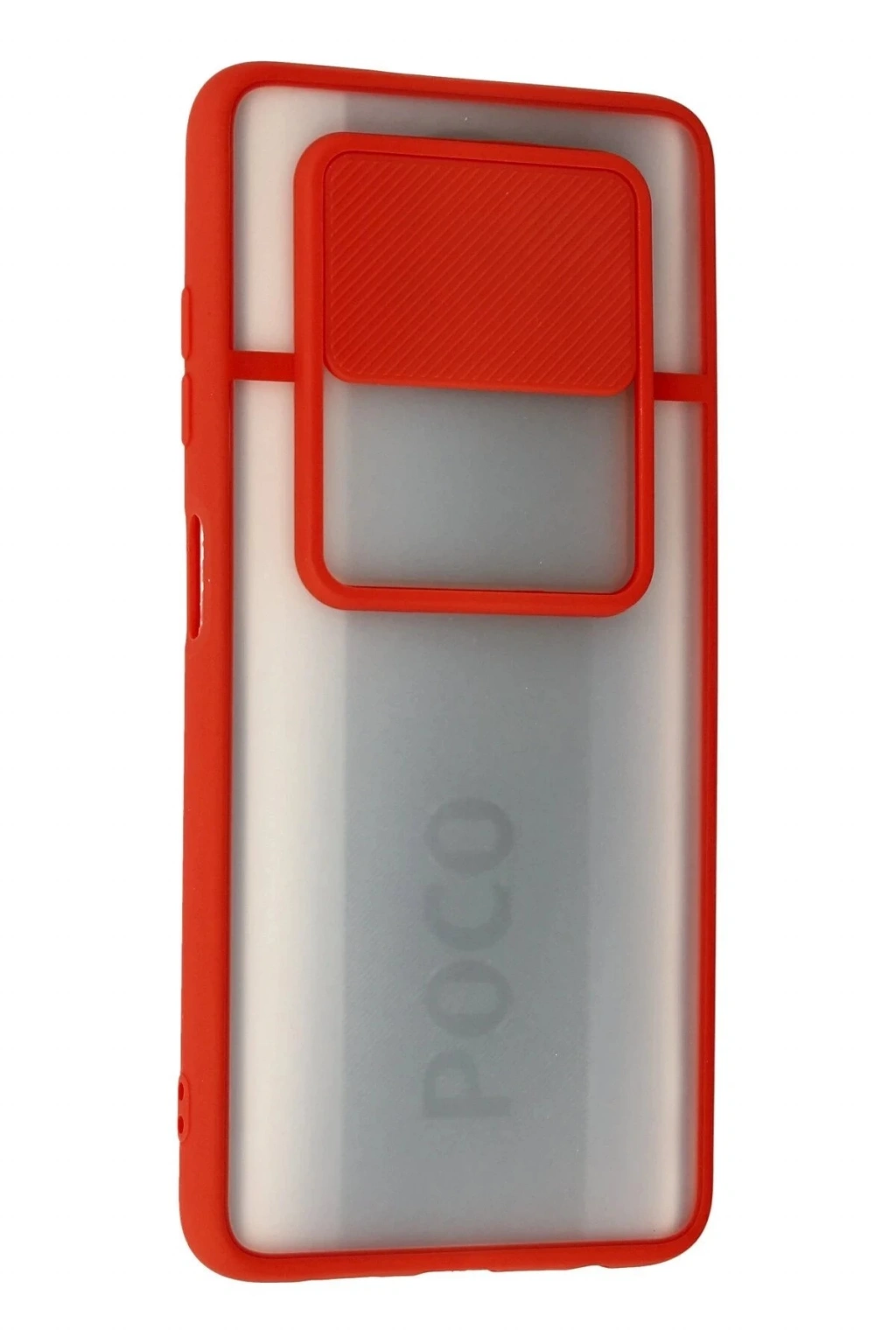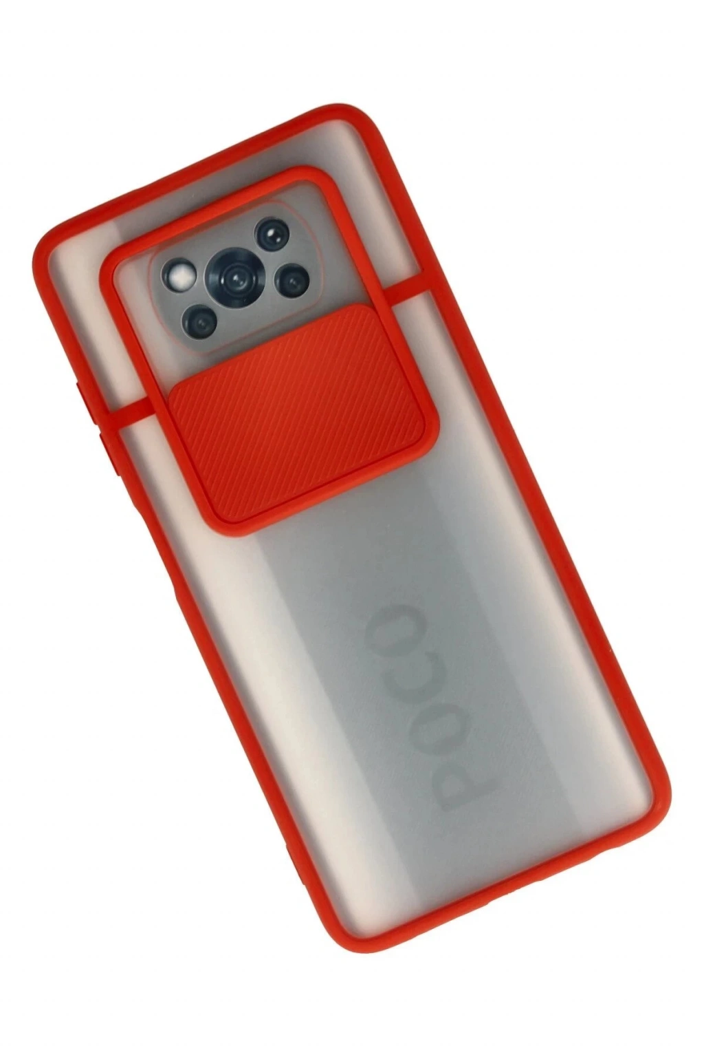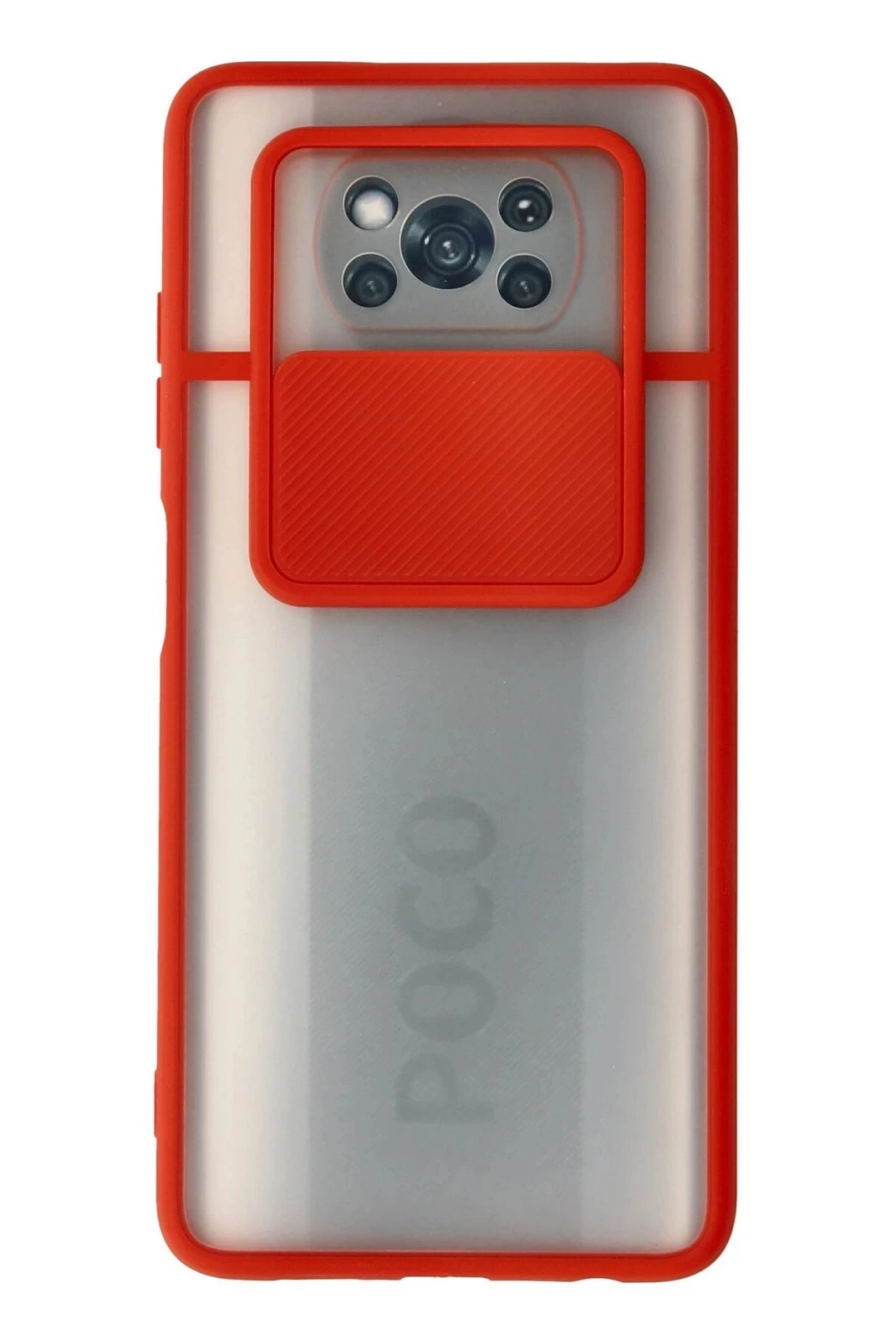 Newface Xiaomi Pocophone X3 Kılıf Palm Buzlu Kamera Sürgülü Silikon - Kırmızı