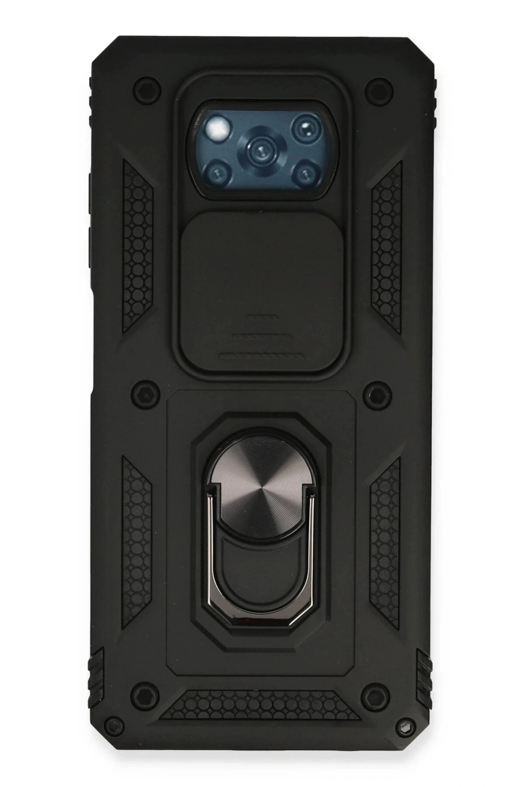 Newface Xiaomi Pocophone X3 Kılıf Pars Lens Yüzüklü Silikon - Siyah