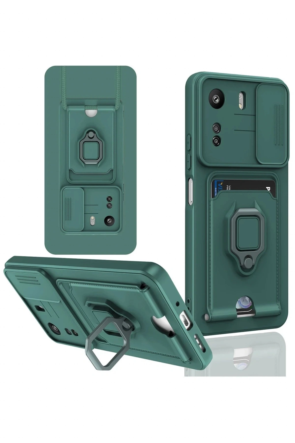Newface Xiaomi Redmi 13C Kılıf Zuma Kartvizitli Yüzüklü Silikon - Yeşil
