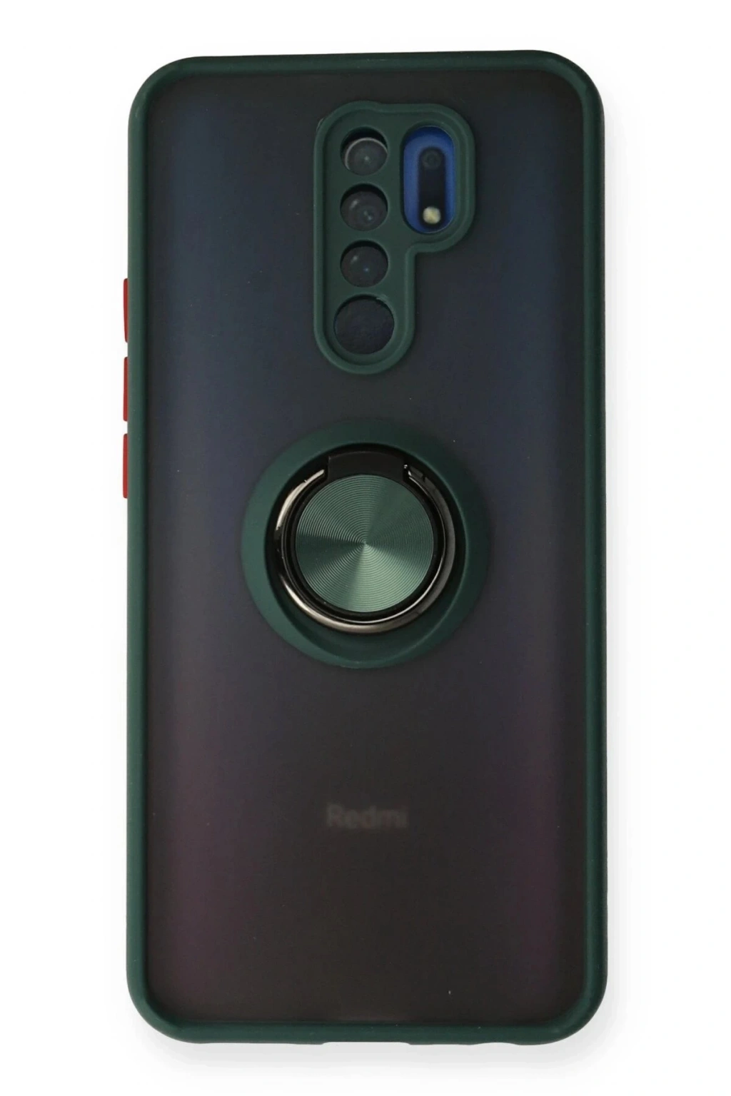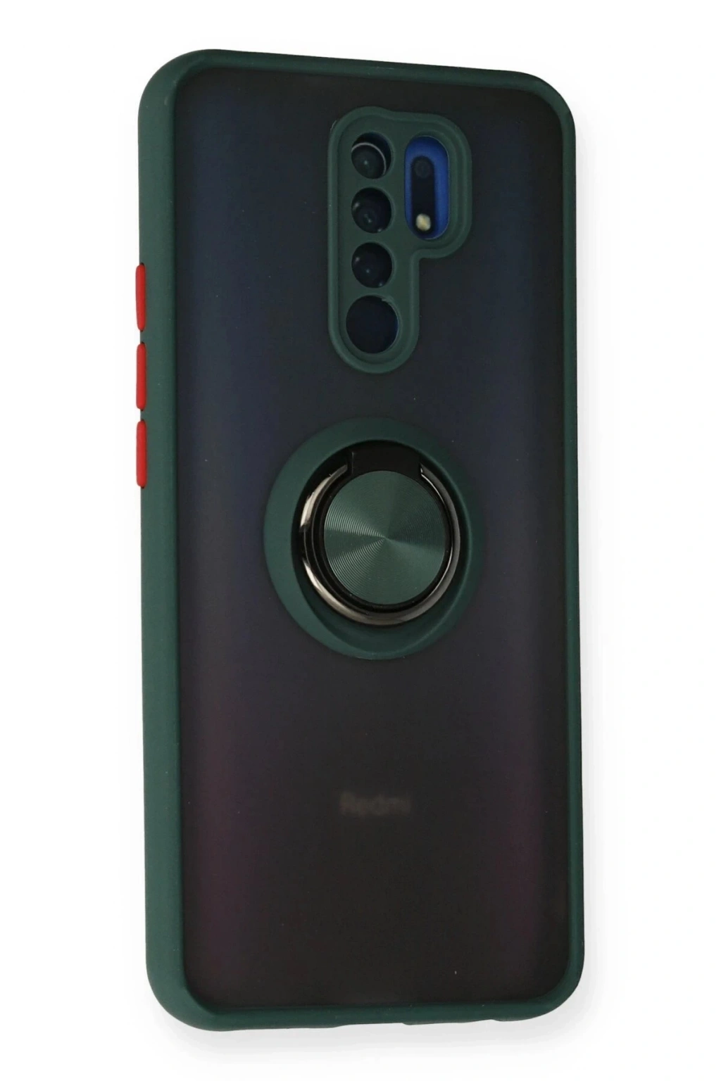 Newface Xiaomi Redmi 9 Kılıf Montreal Yüzüklü Silikon Kapak - Yeşil