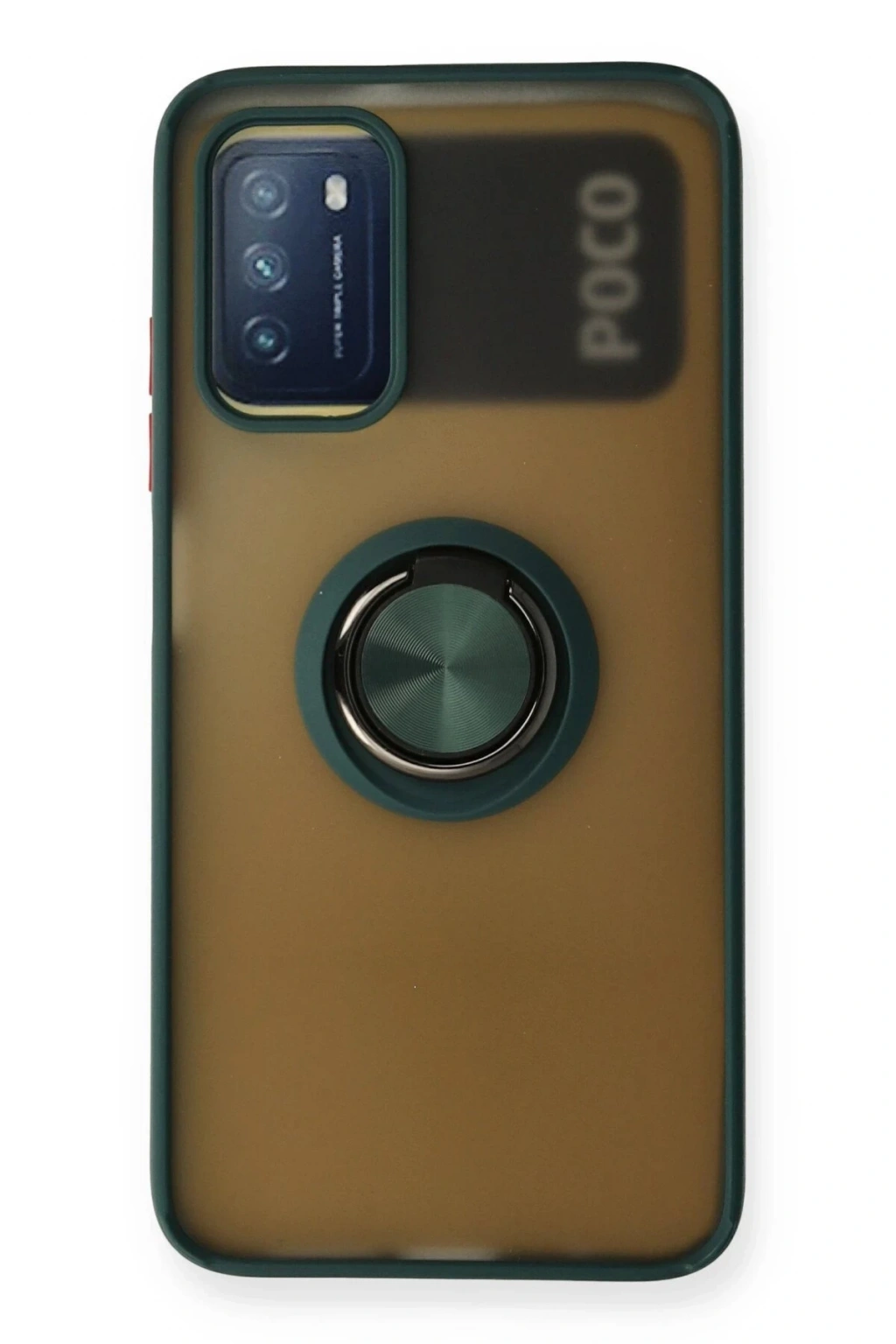 Newface Xiaomi Redmi 9T Kılıf Montreal Yüzüklü Silikon Kapak - Yeşil