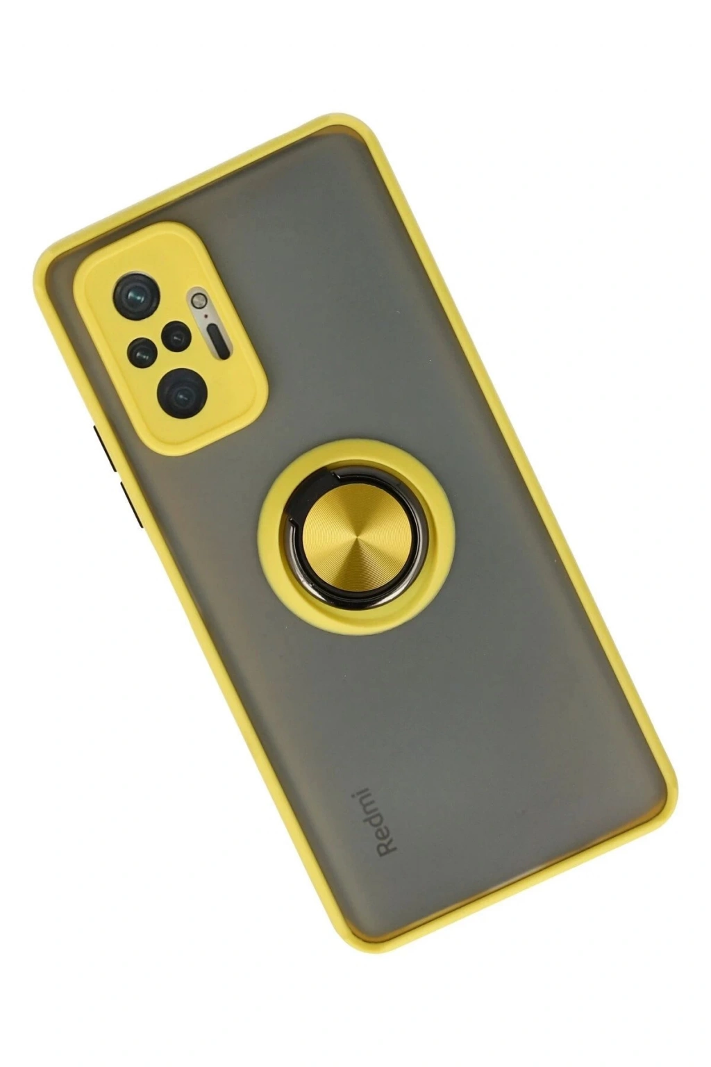 Newface Xiaomi Redmi Note 10 Pro Kılıf Montreal Yüzüklü Silikon Kapak - Sarı