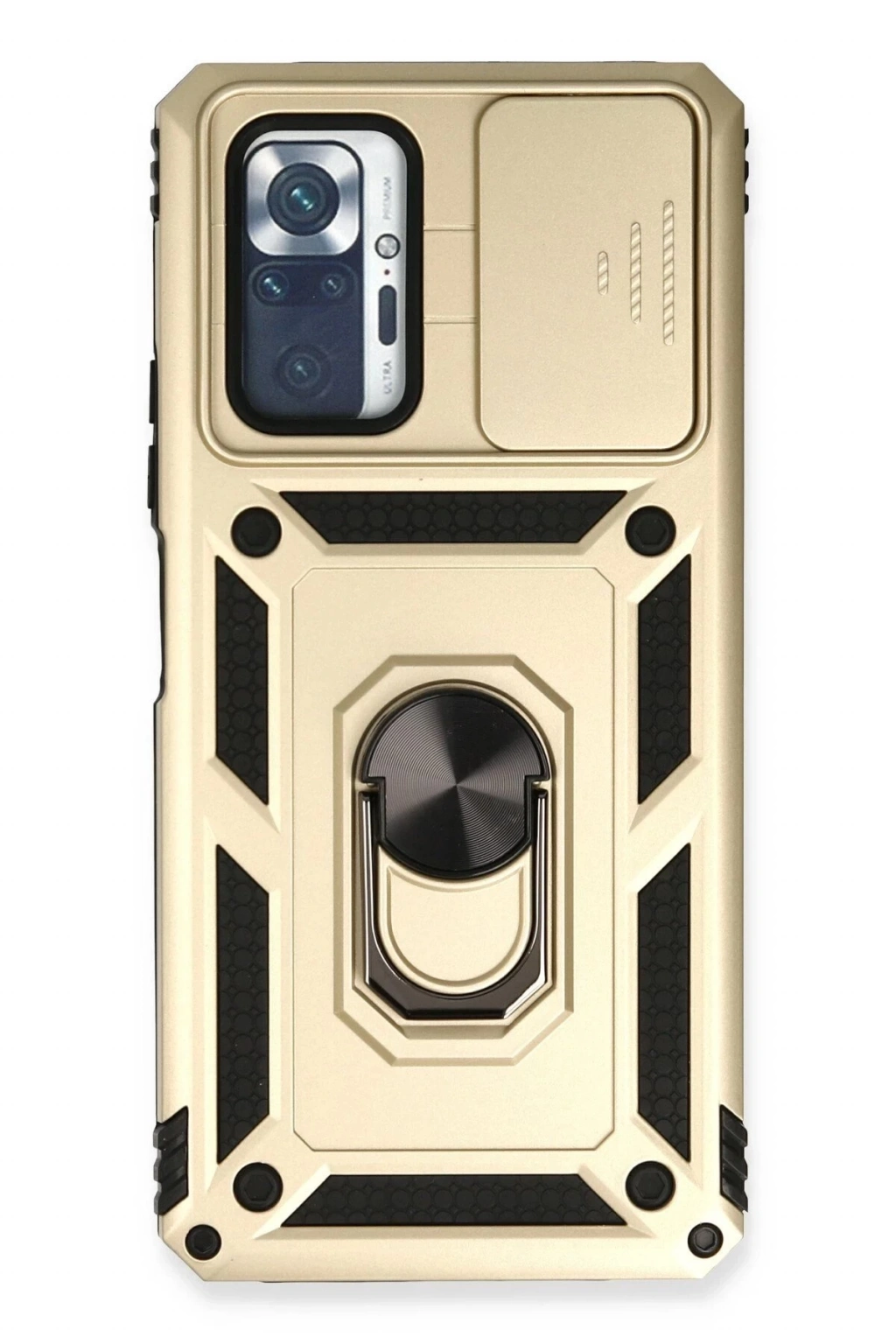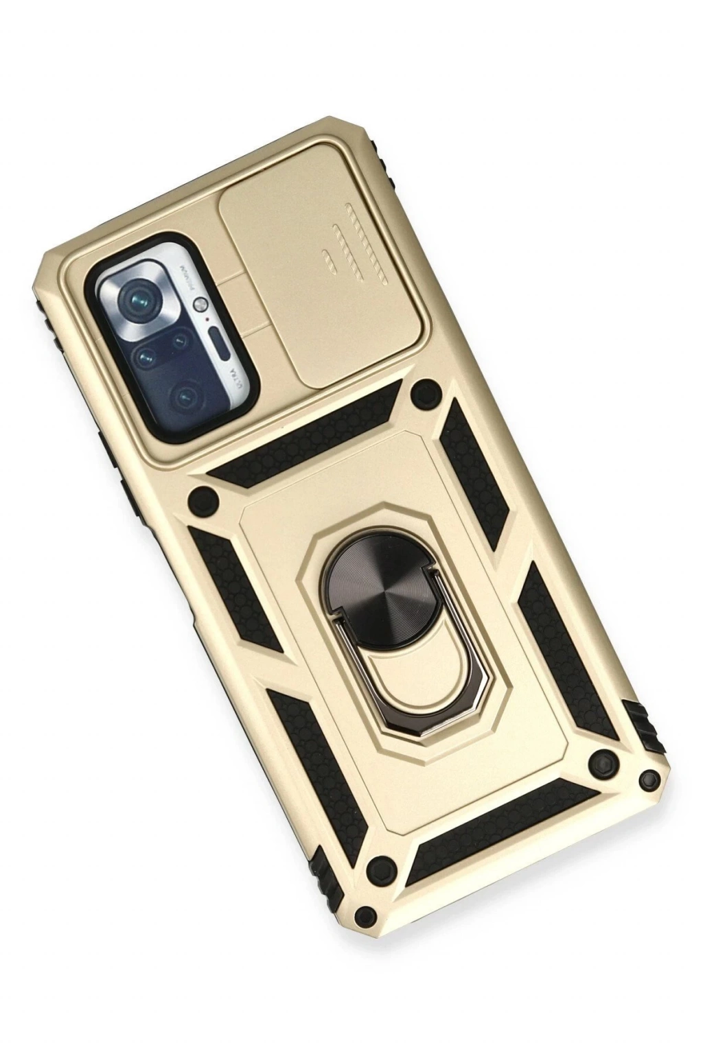 Newface Xiaomi Redmi Note 10 Pro Kılıf Pars Lens Yüzüklü Silikon - Gold