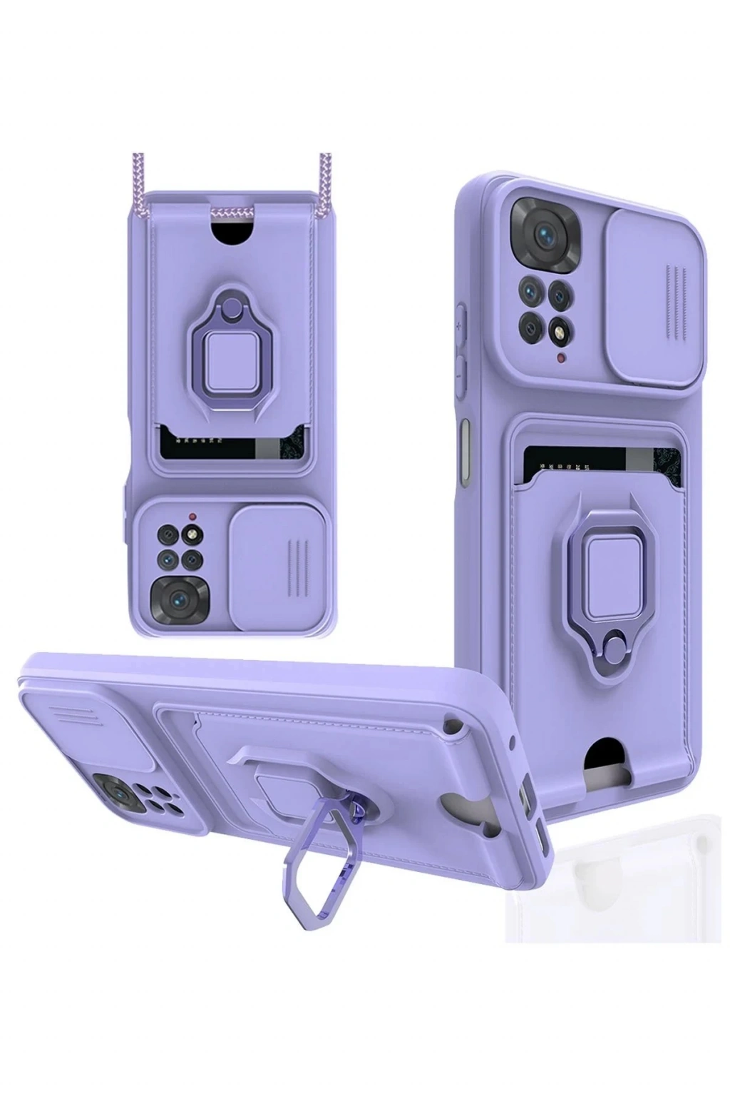 Newface Xiaomi Redmi Note 11 Kılıf Zuma Kartvizitli Yüzüklü Silikon - Lila