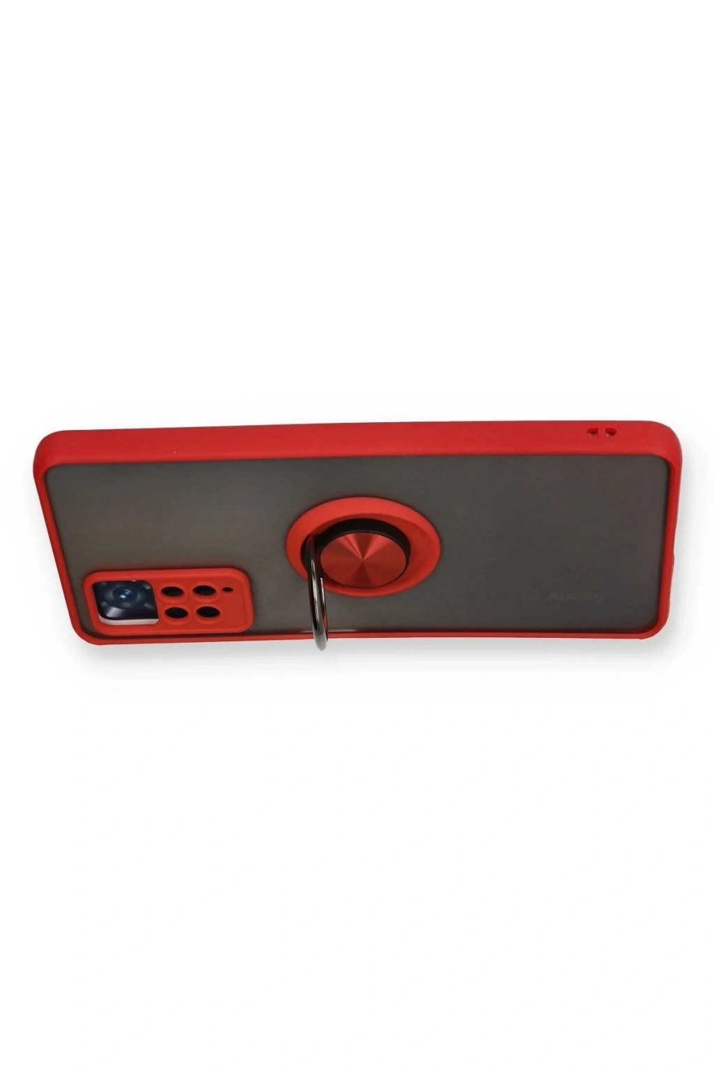 Newface Xiaomi Redmi Note 11 Pro Kılıf Montreal Yüzüklü Silikon Kapak - Kırmızı
