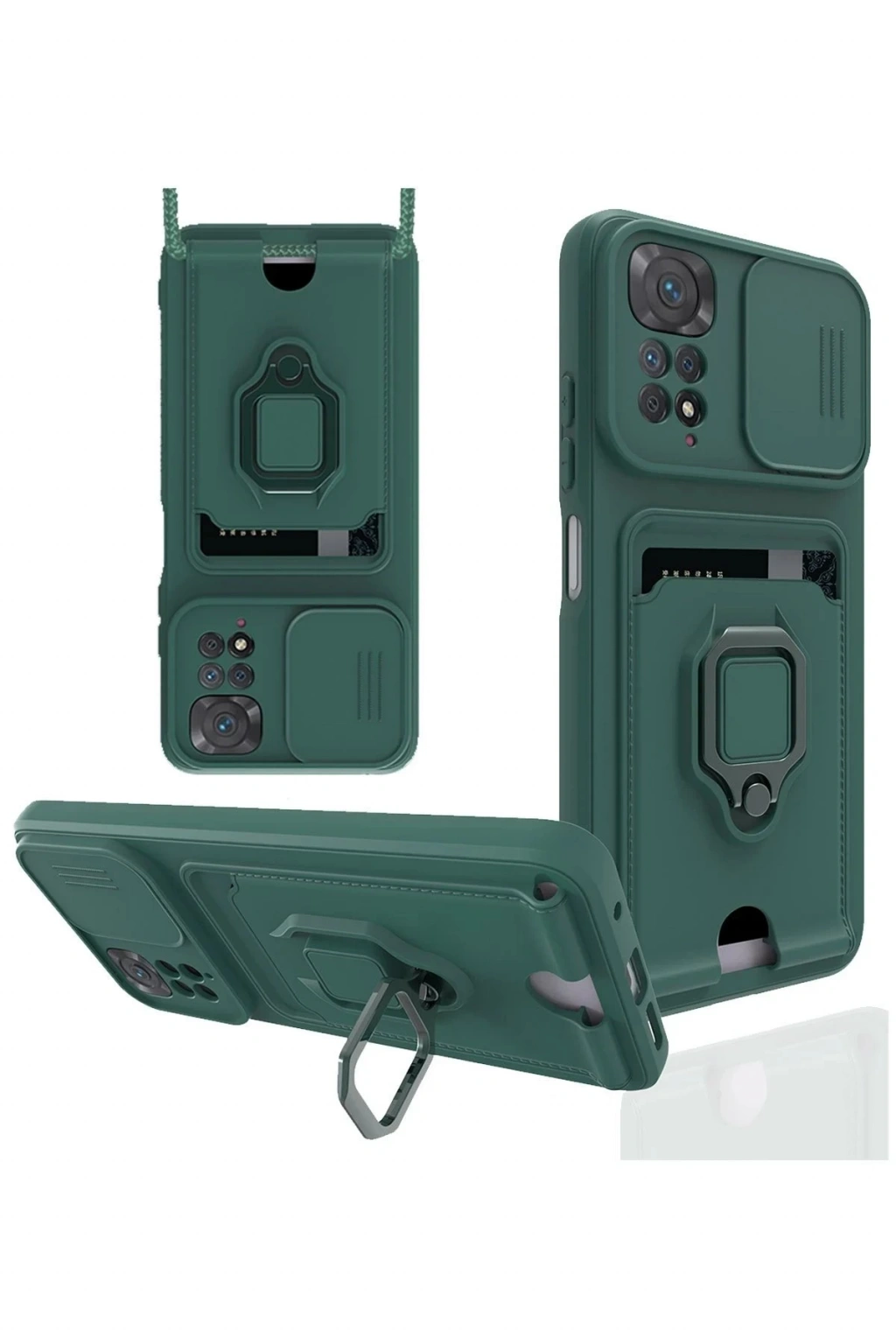 Newface Xiaomi Redmi Note 11 Pro Kılıf Zuma Kartvizitli Yüzüklü Silikon - Yeşil