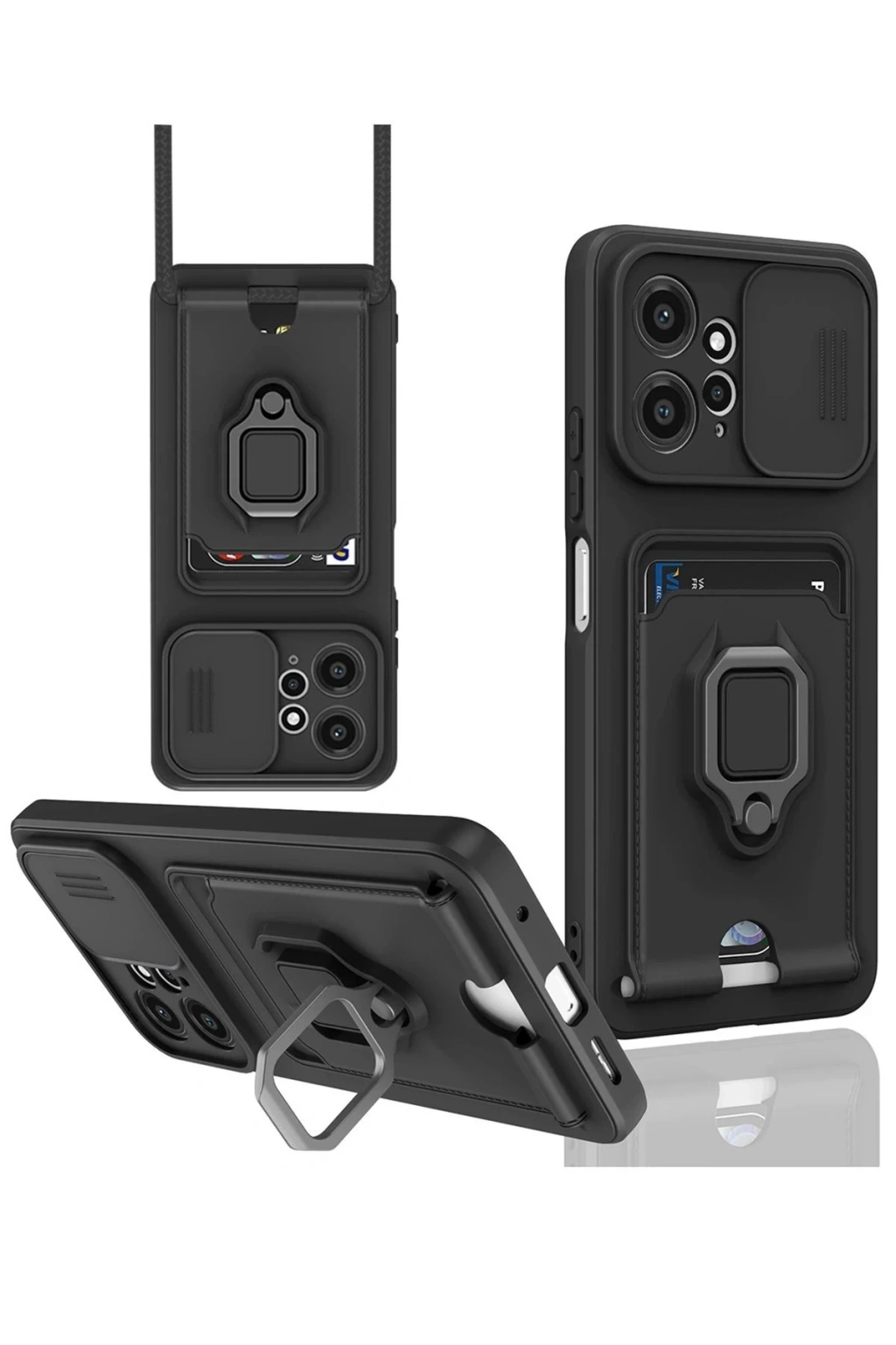 Newface Xiaomi Redmi Note 12 4G Kılıf Zuma Kartvizitli Yüzüklü Silikon - Siyah