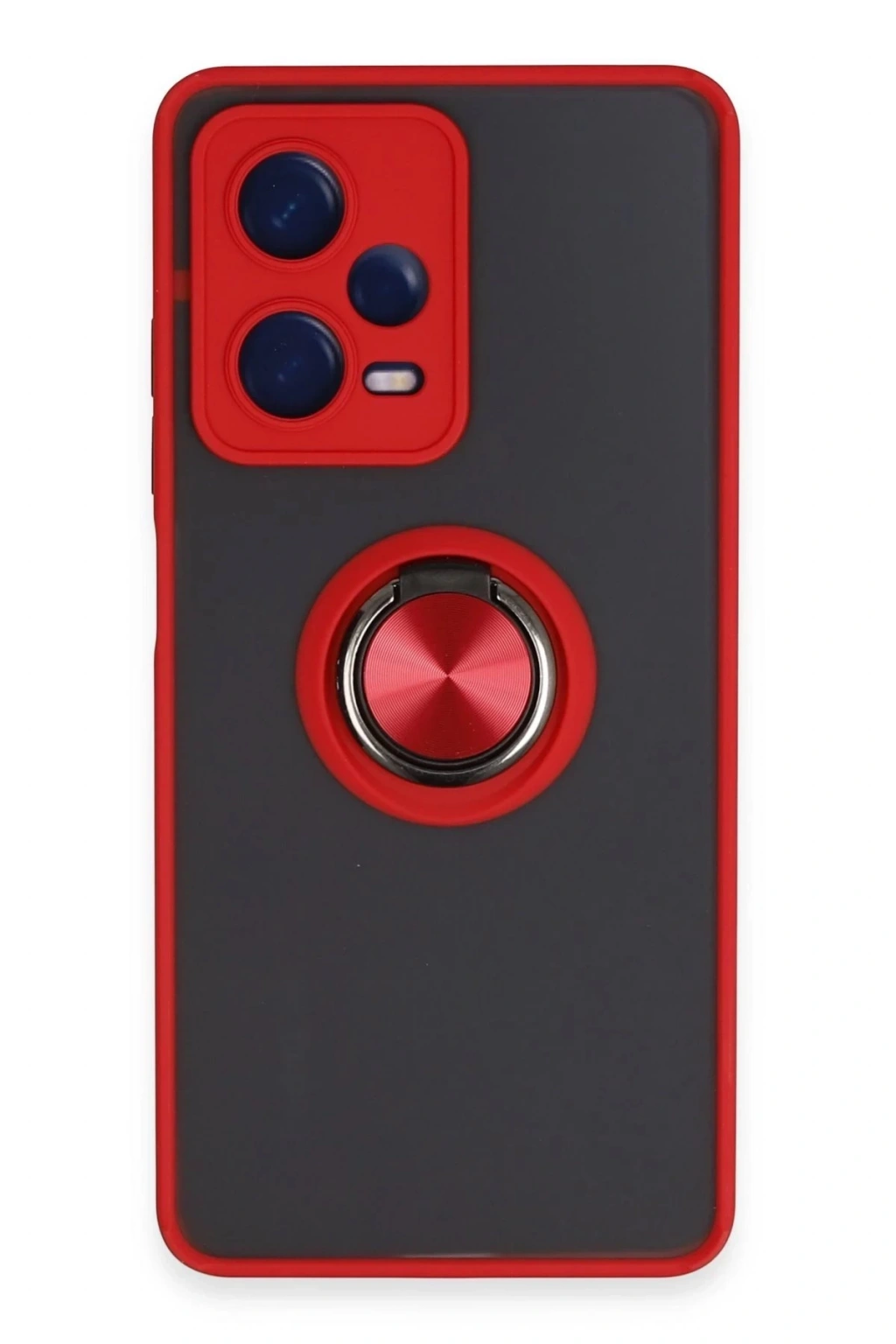 Newface Xiaomi Redmi Note 12 5G Kılıf Montreal Yüzüklü Silikon Kapak - Kırmızı