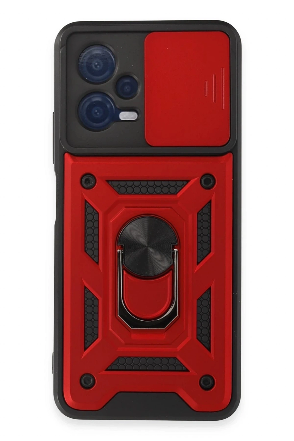 Newface Xiaomi Redmi Note 12 5G Kılıf Pars Lens Yüzüklü Silikon - Kırmızı