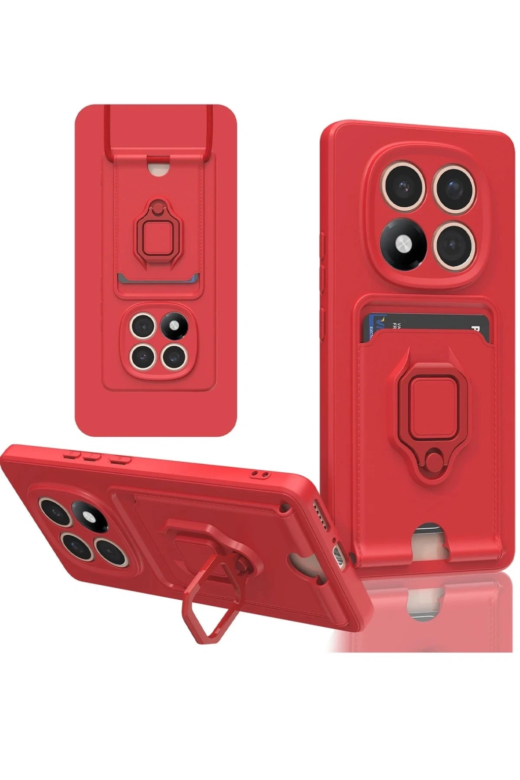 Newface Xiaomi Redmi Note 14 Pro 5G Kılıf Zuma Kartvizitli Yüzüklü Silikon - Kırmızı
