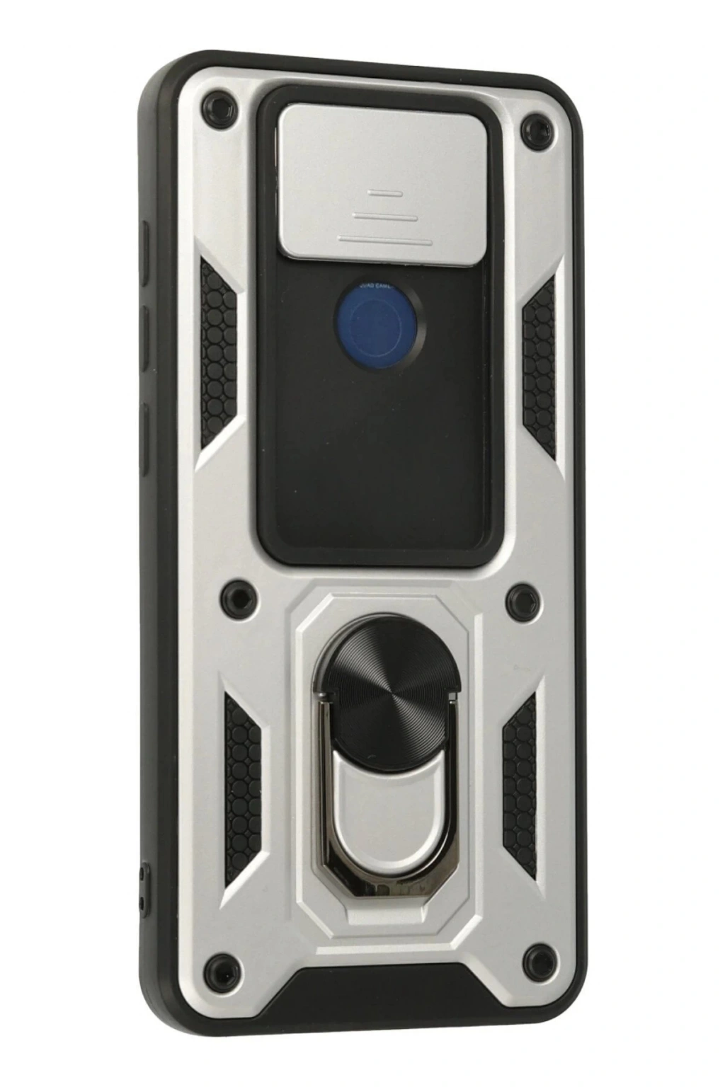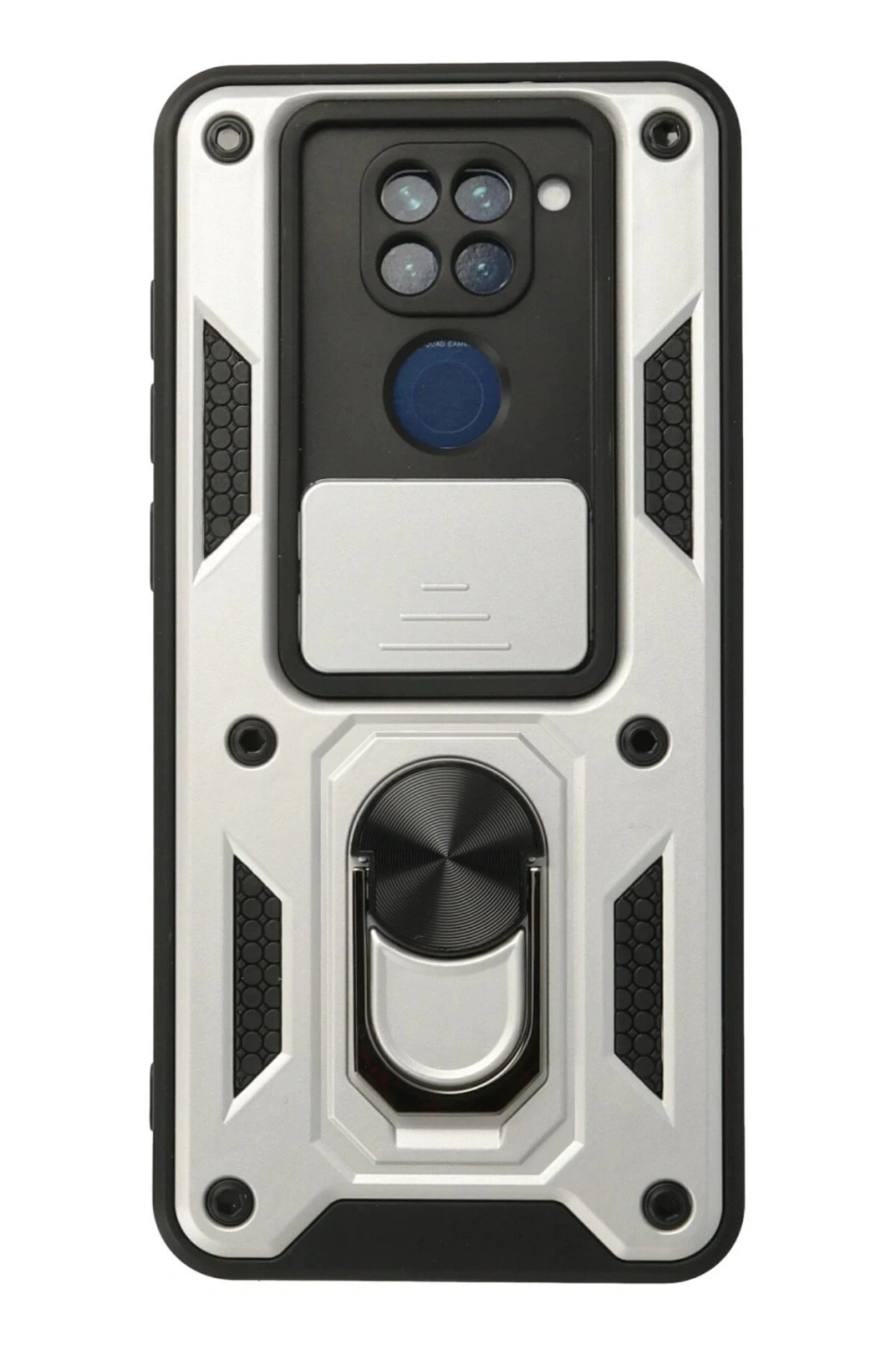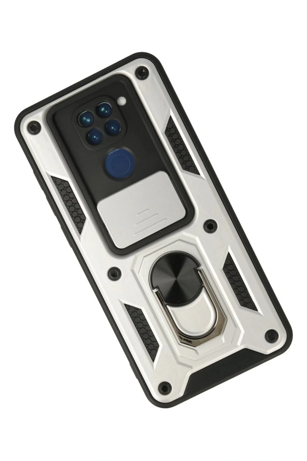 Newface Xiaomi Redmi Note 9 Kılıf Pars Lens Yüzüklü Silikon - Gümüş