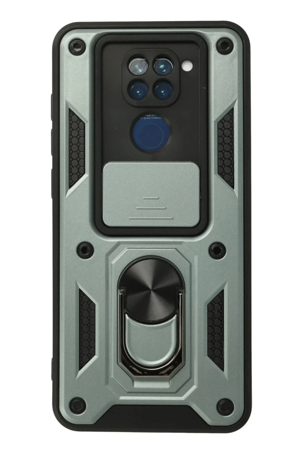 Newface Xiaomi Redmi Note 9 Kılıf Pars Lens Yüzüklü Silikon - Yeşil