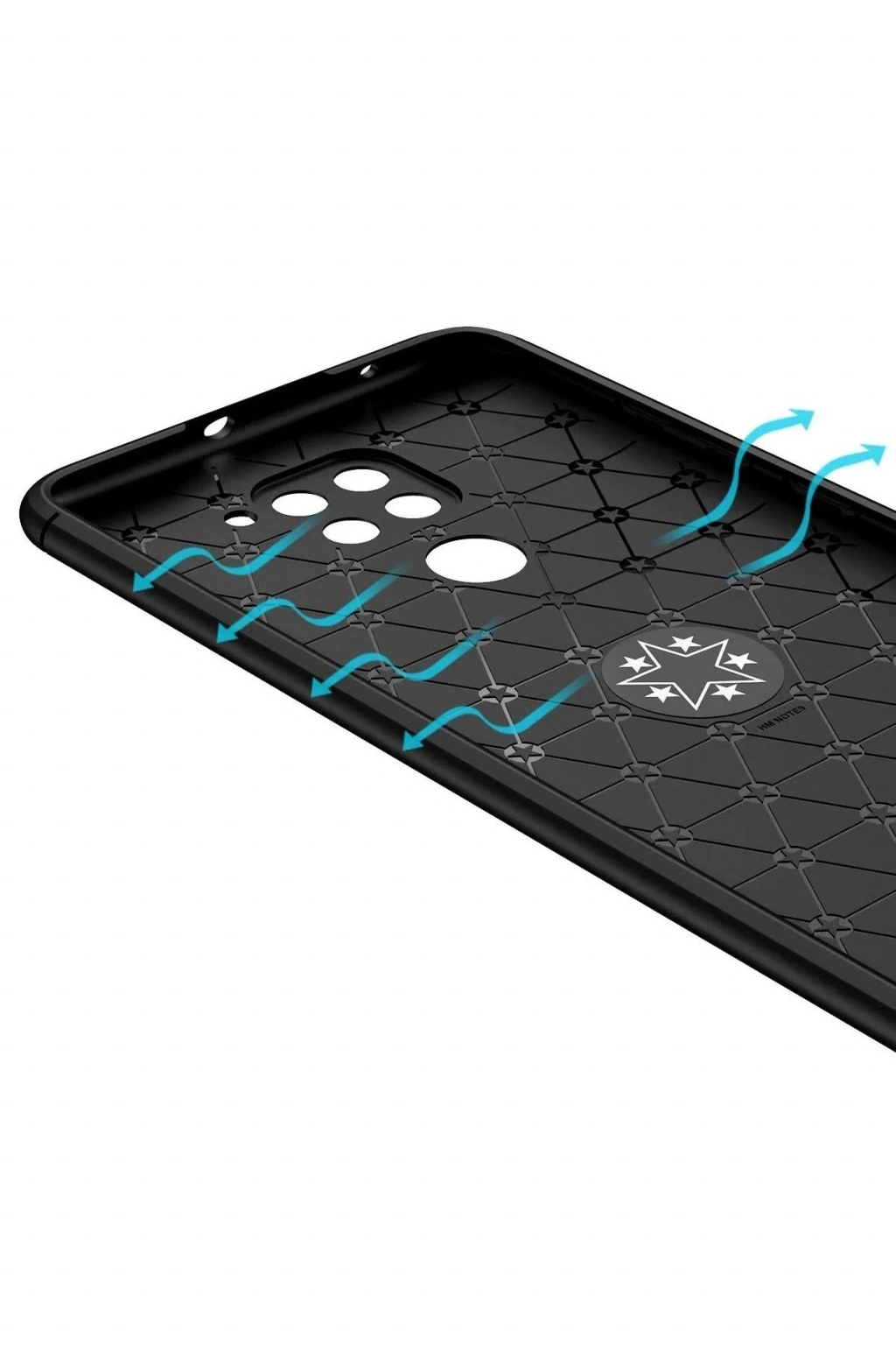 Newface Xiaomi Redmi Note 9 Kılıf Range Yüzüklü Silikon - Siyah-Kırmızı