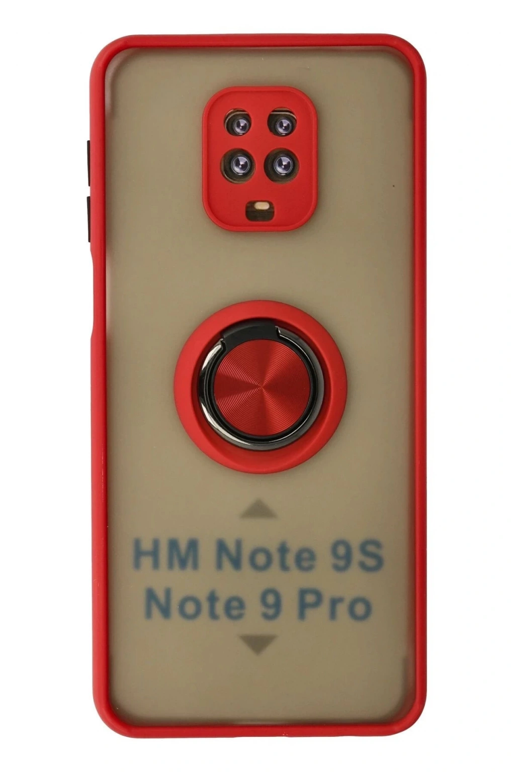 Newface Xiaomi Redmi Note 9 Pro Kılıf Montreal Yüzüklü Silikon Kapak - Kırmızı