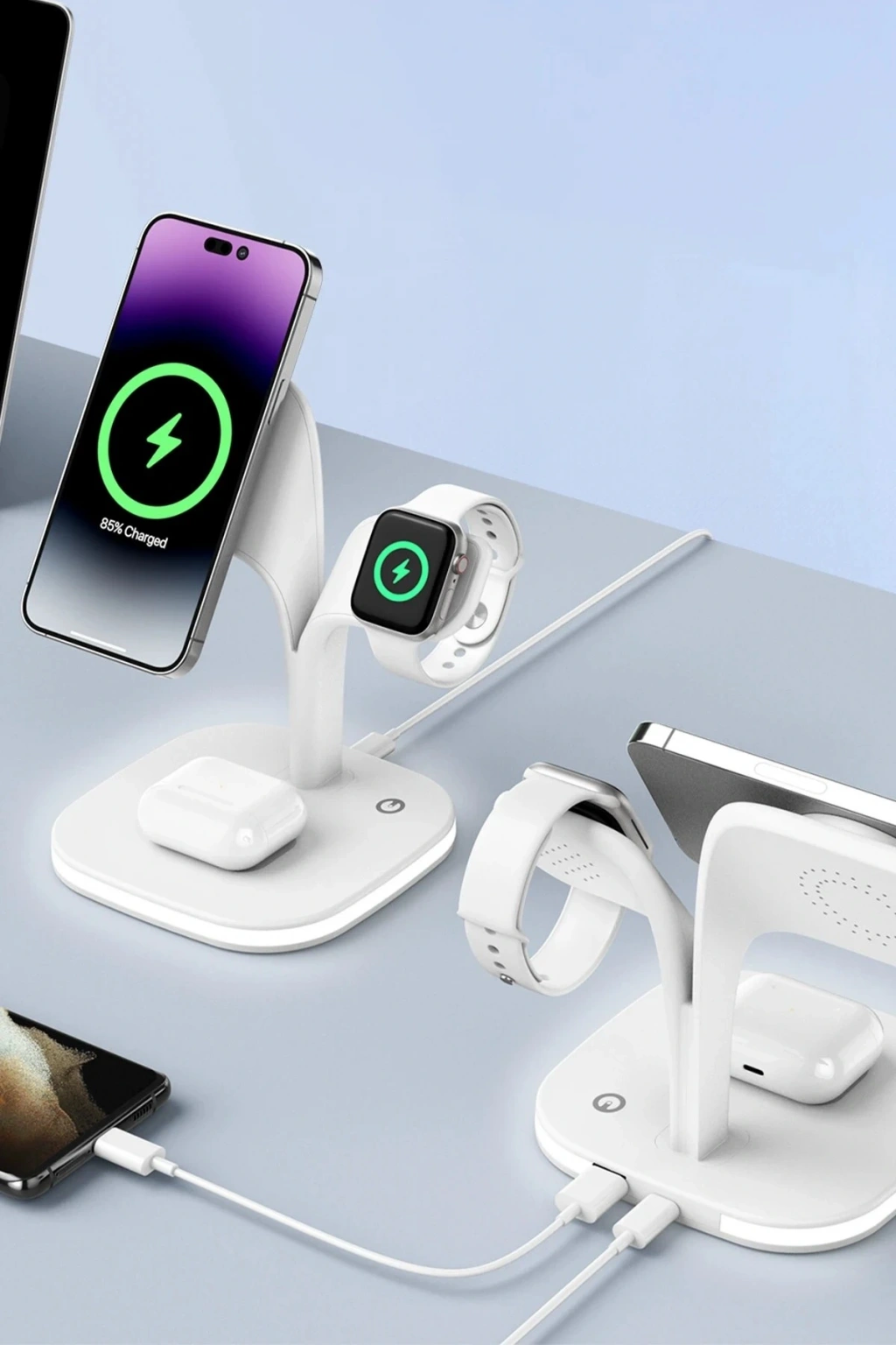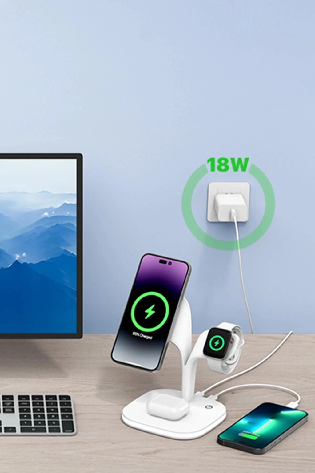 Telefon, kulaklık ve akıllı saat gibi üç cihazı aynı anda kablosuz olarak şarj edin.