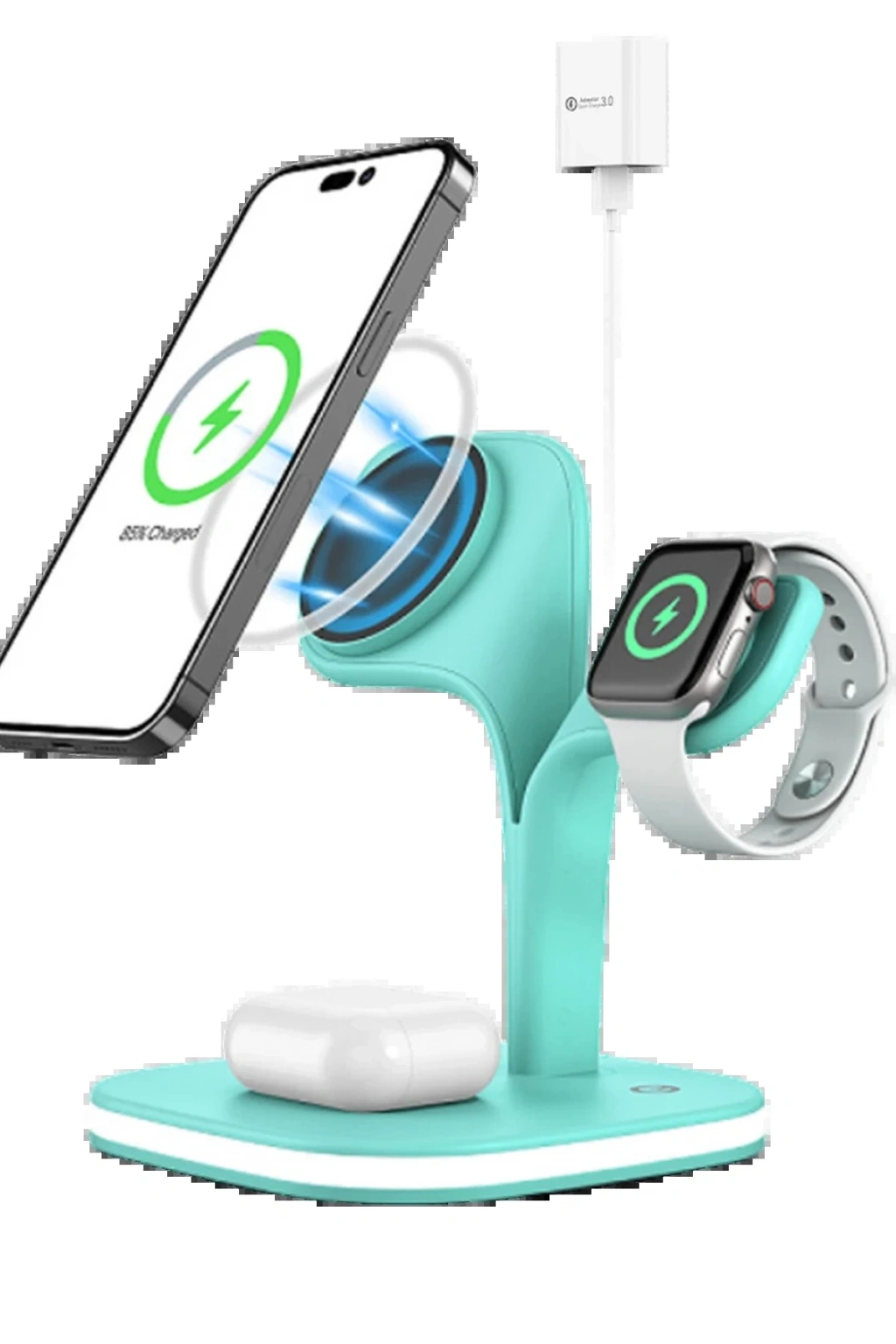 Telefon, kulaklık ve akıllı saat gibi üç cihazı aynı anda kablosuz olarak şarj edin.