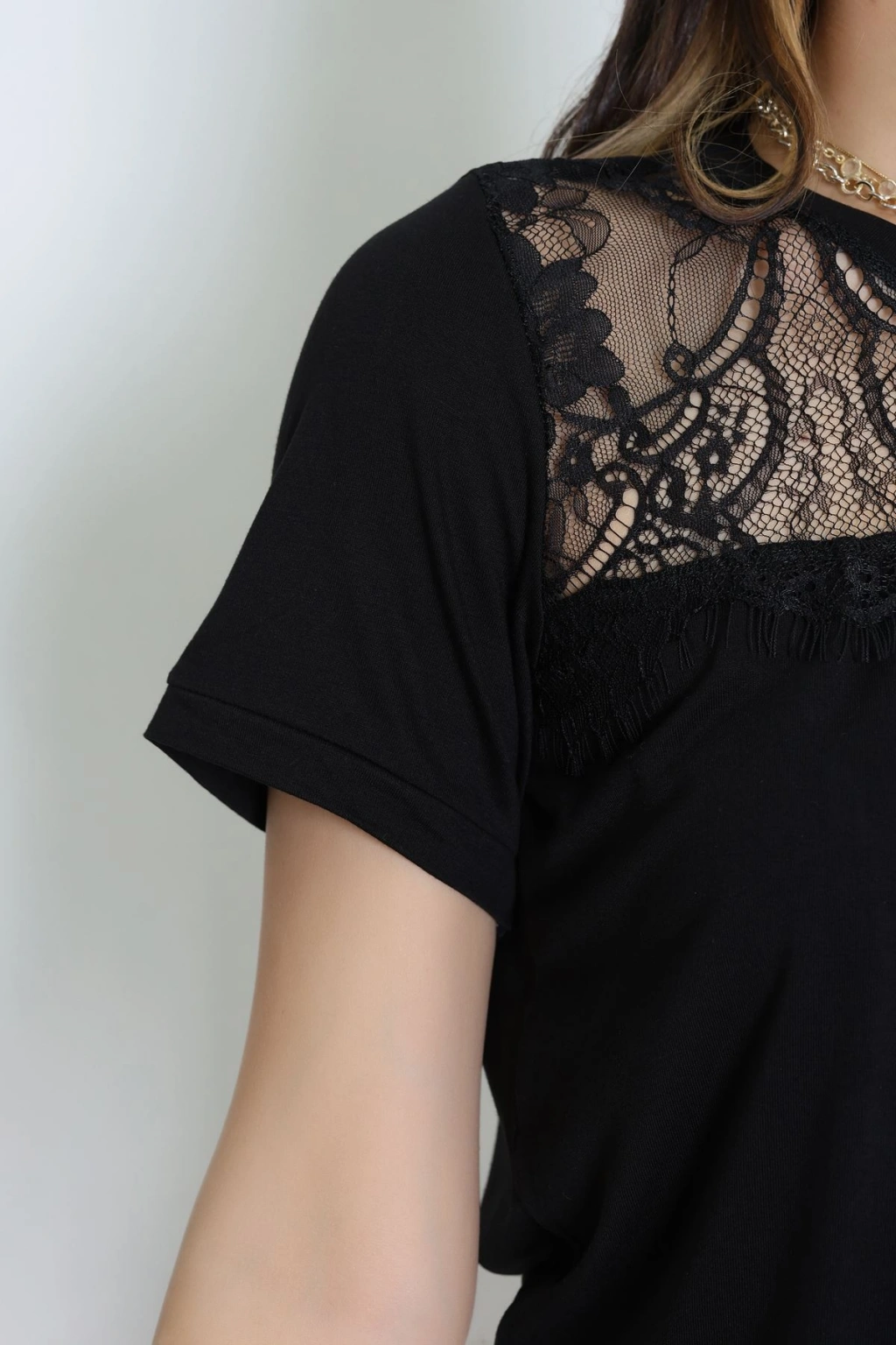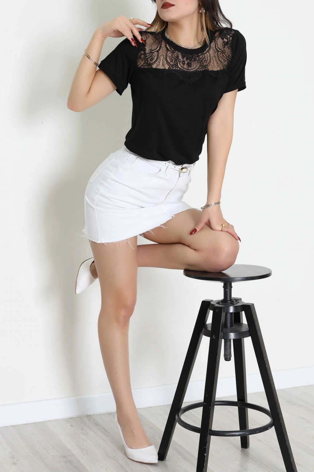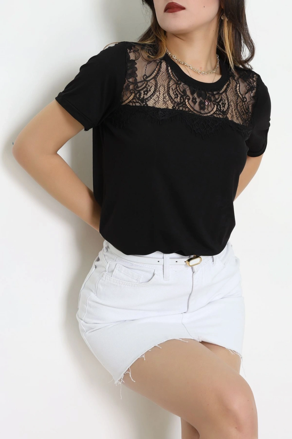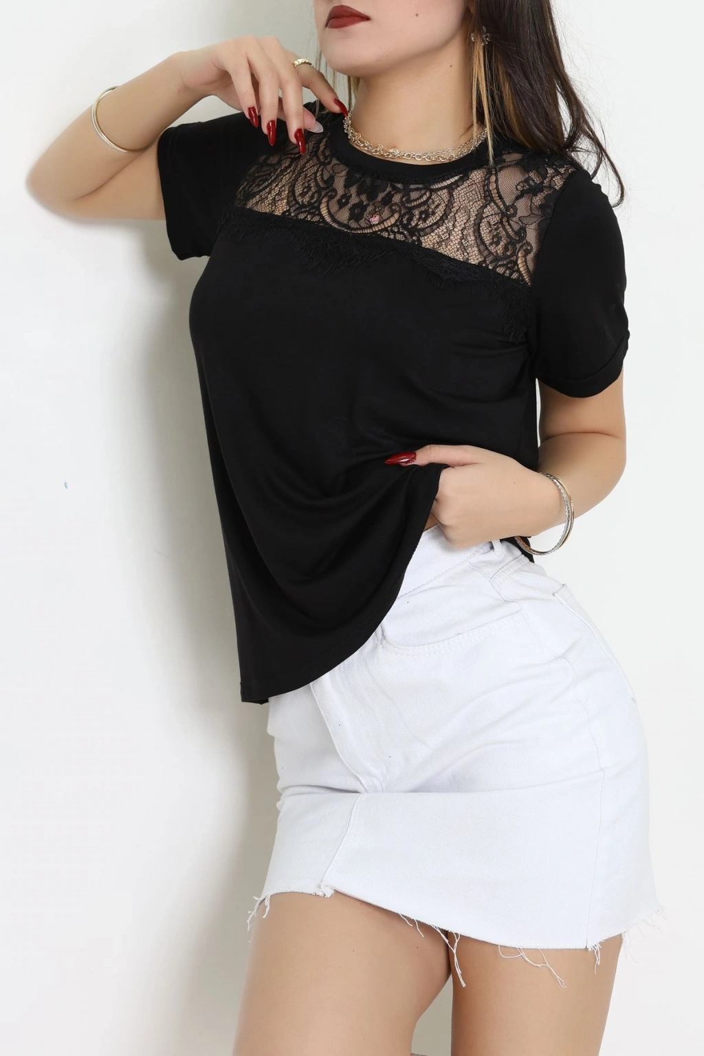 Ön Dantel Detaylı Viskon Bluz Siyah - 89015.1256.