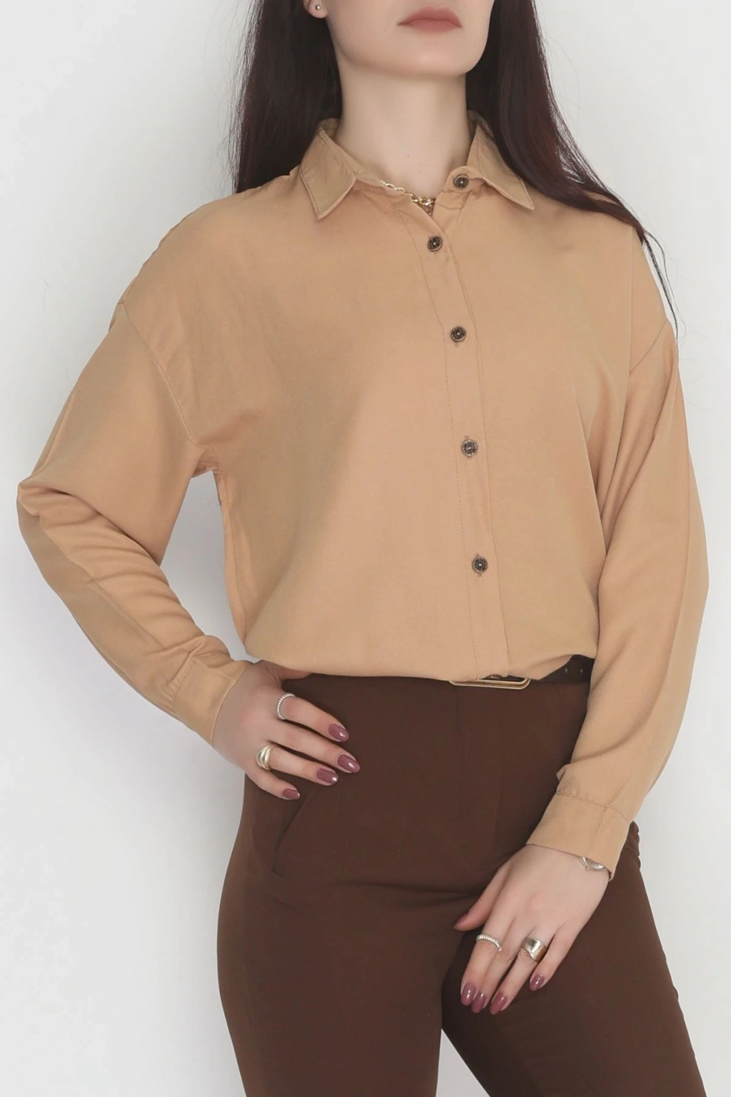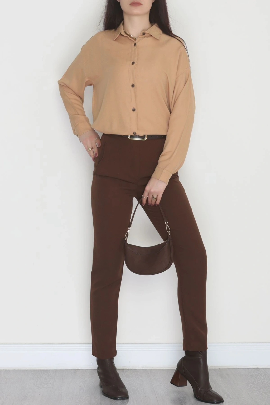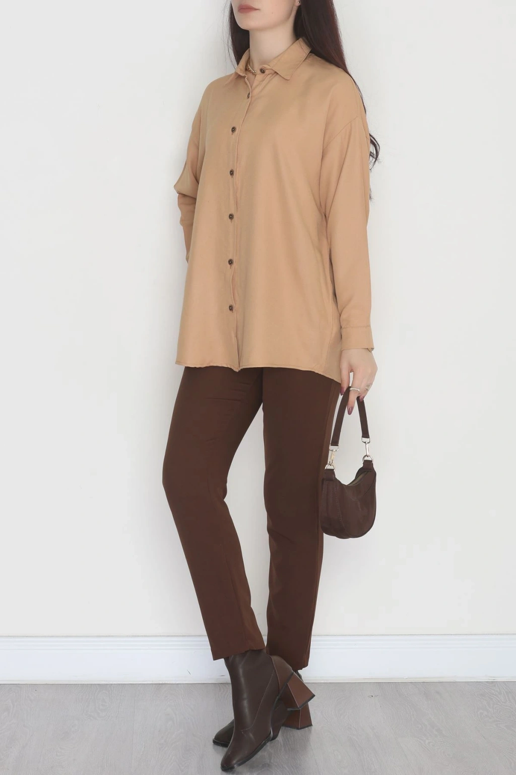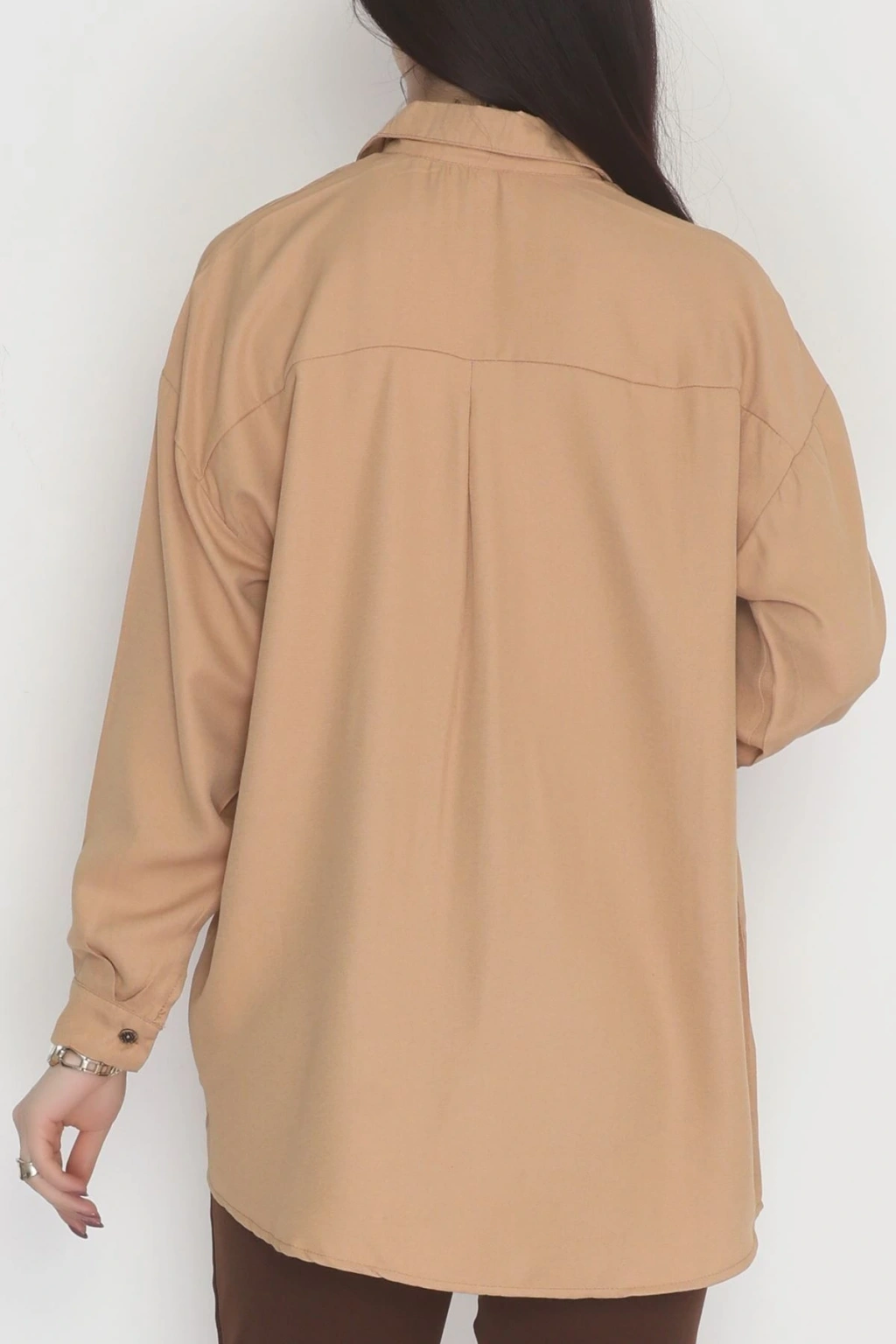 Çift Cepli Kuşaklı Tunik Gömlek Taba - 70991.1775.