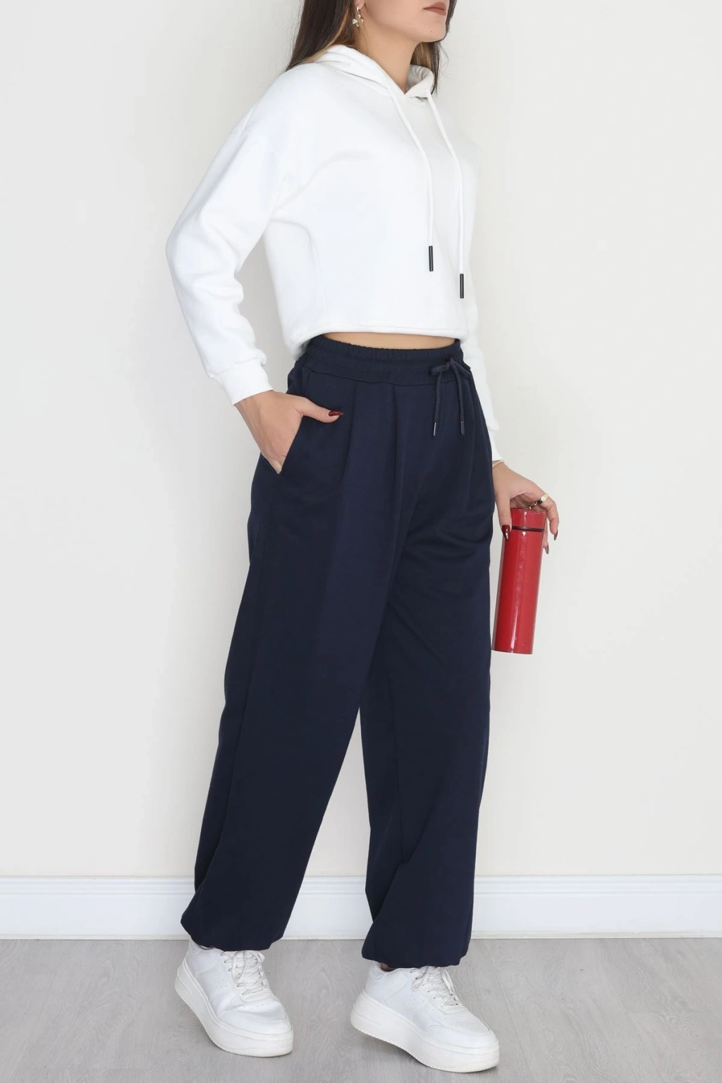 # Yüksek Bel Salaş Eşofman Altı ## Özgün Tasarım ve Rahatlık Maksimum konfor sunan **yüksek bel eşofman altı** modelimiz, lacivert rengi ve rahat kalıbıyla günlük stilinize dinamizm katıyor. Bu parça, kaliteli 2 iplik kumaş yapısıyla yumuşak bir dokunuş sağlarken, esnek özelliği sayesinde hareket özgürlüğünüzü destekler. Özel pileli detayları, salaş kesimine zarif bir hava katarak modern bir görünüm sunar. Bu **lacivert eşofman**, paça lastikli bitişiyle bilekte toplanarak çağdaş bir silüet oluşturur ve giyim rahatlığını artırır. Yüksek bel formu, gün boyu destek ve konfor sağlarken, geniş kesimiyle her an rahat hissetmenizi garantiler. Hem şıklığı hem de konforu bir arada arayanlar için ideal olan bu tasarım, uygun fiyatlı bir seçenektir. Hemen sepete ekleyin.