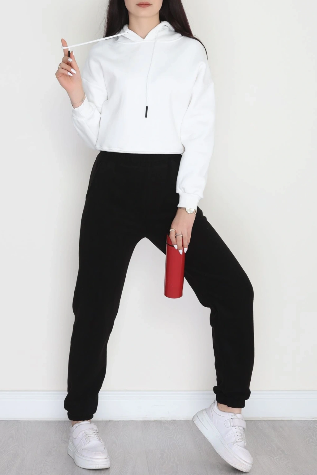 3 İplik Biyeli Palazzo Eşofman Altı Beyaz - 30104.1878.
