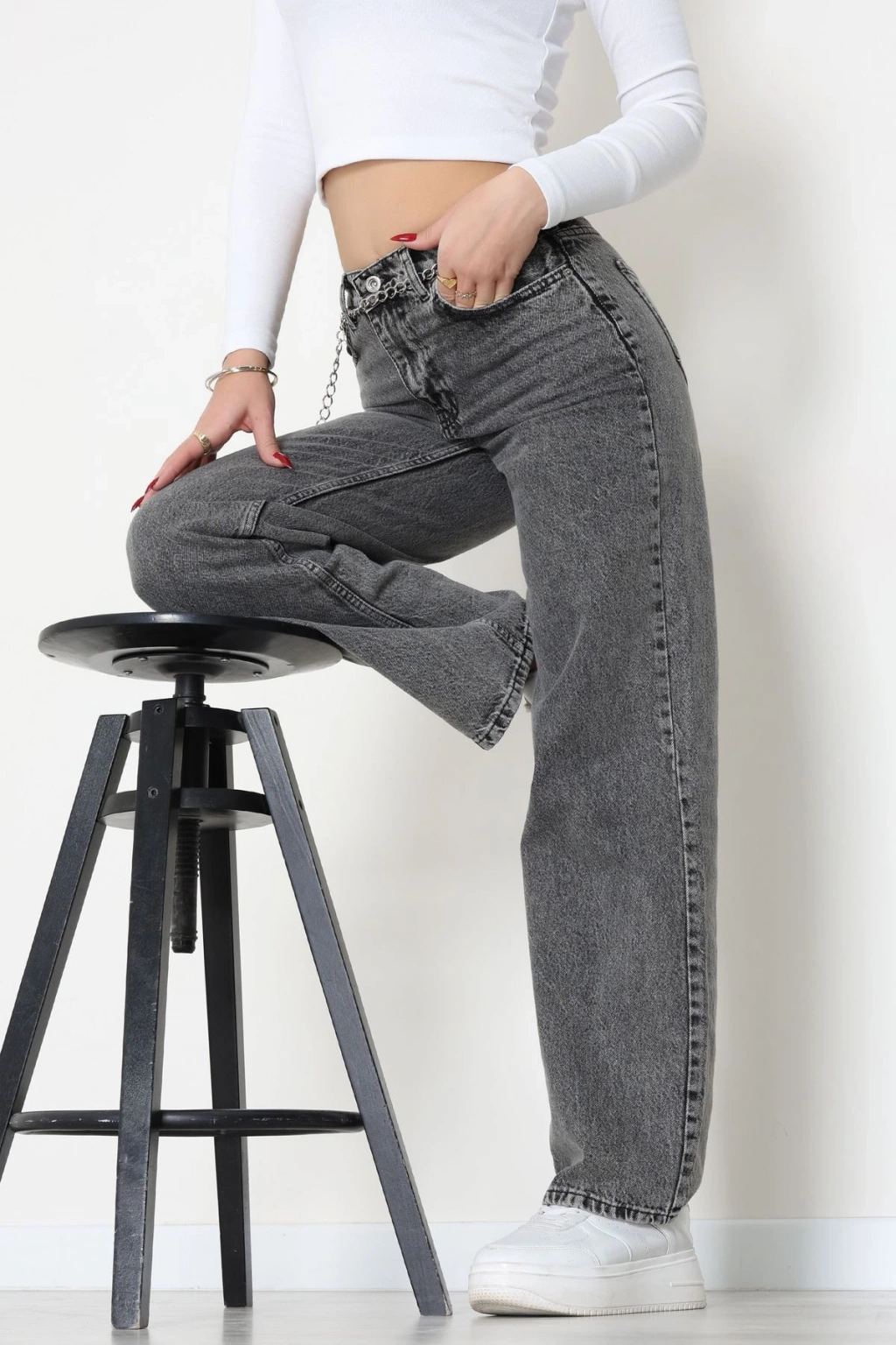 Arkası Tokalı Baggy Kot Pantolon Siyah - 31895.1606.