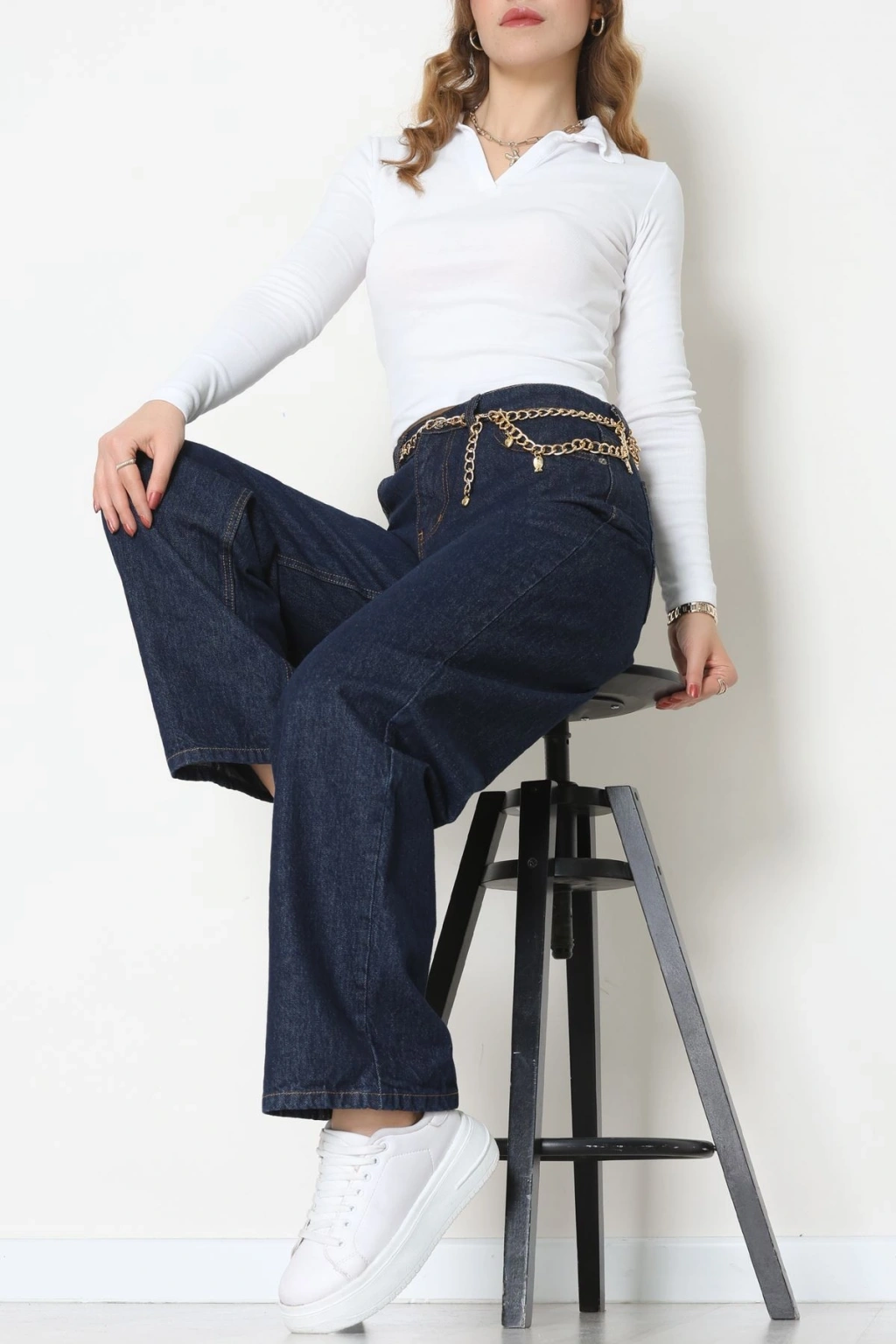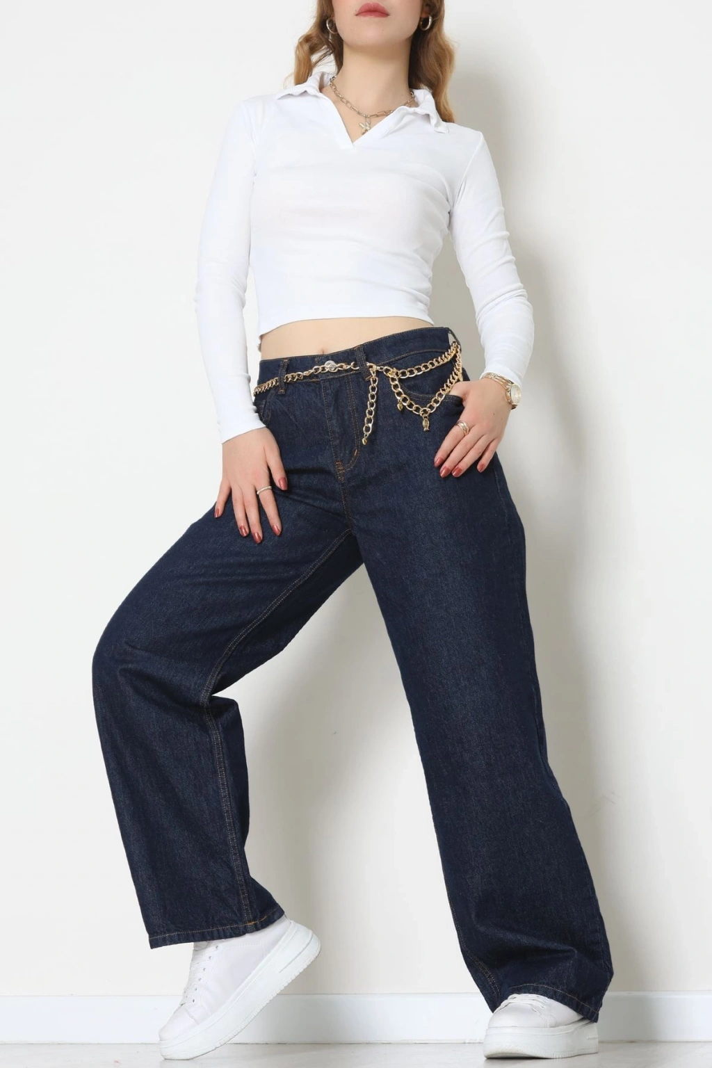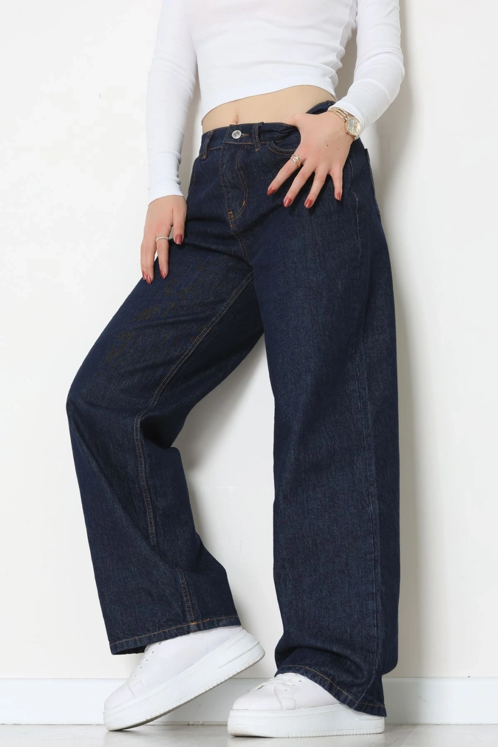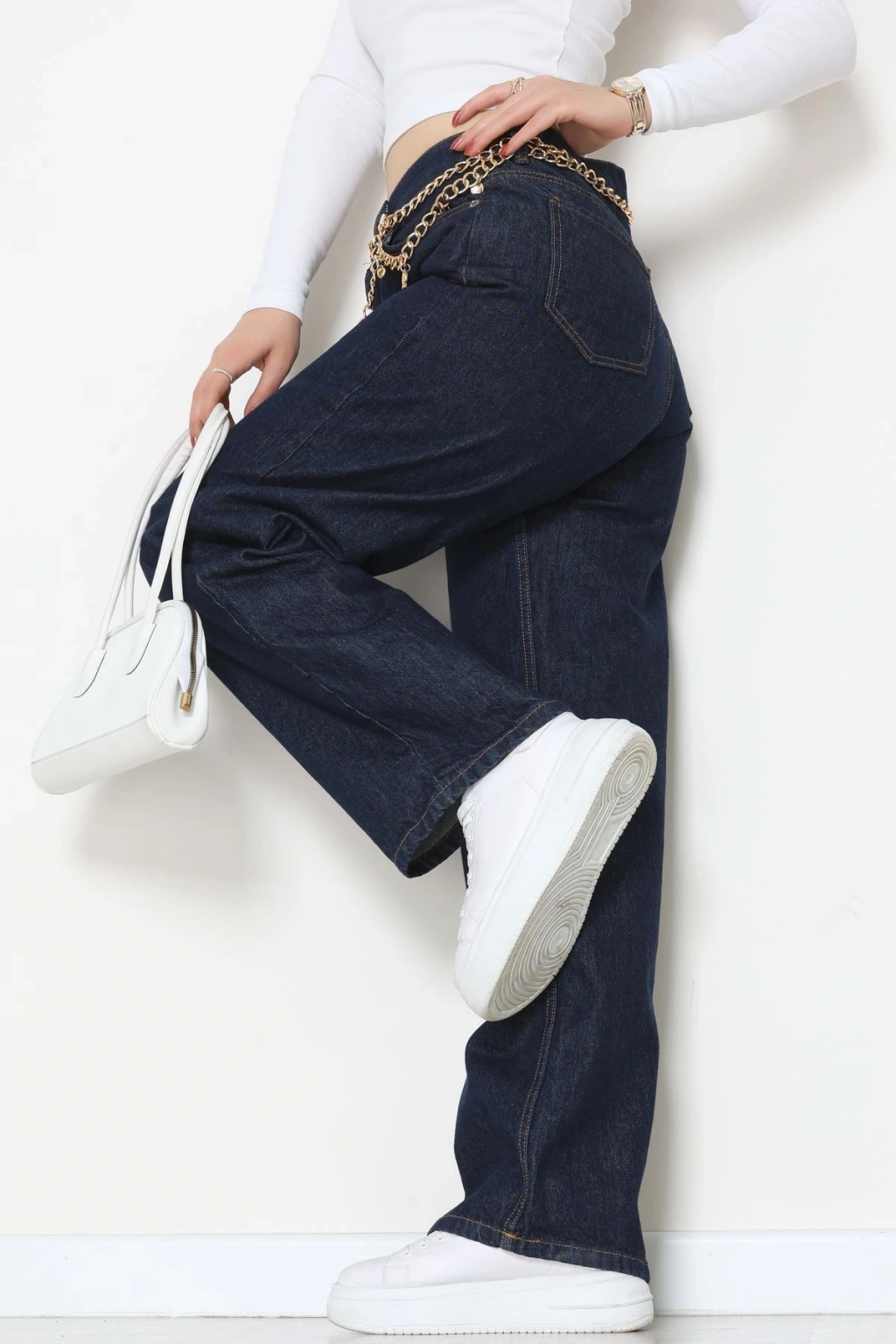 Arkası Tokalı Baggy Kot Pantolon Koyumavi - 31895.1606.