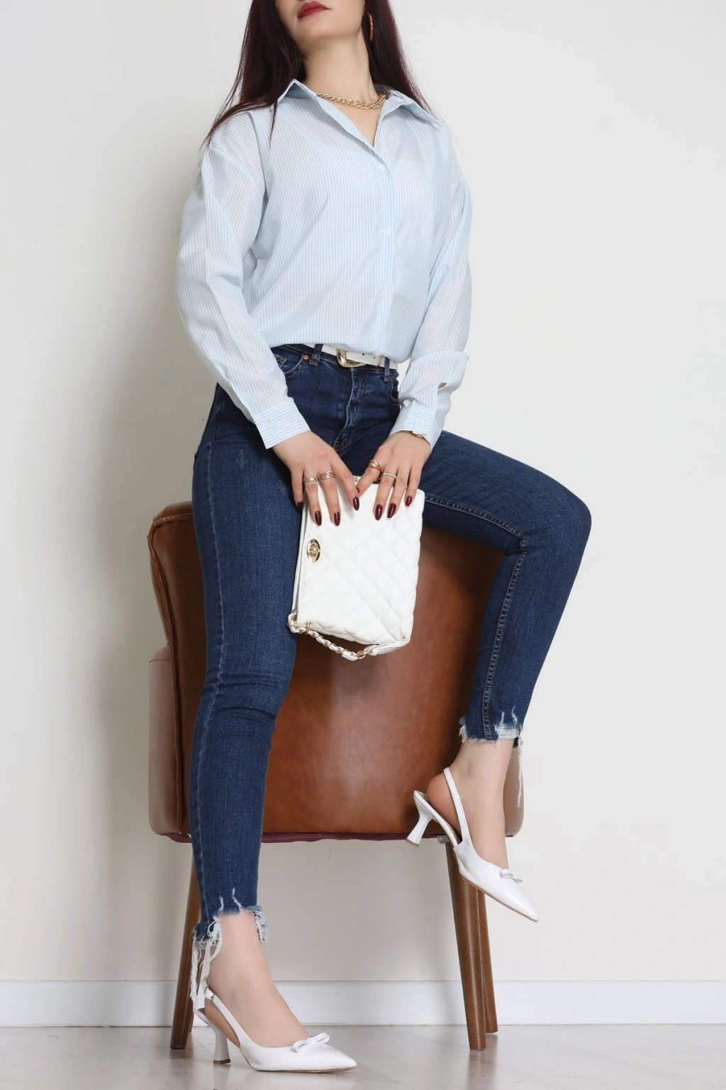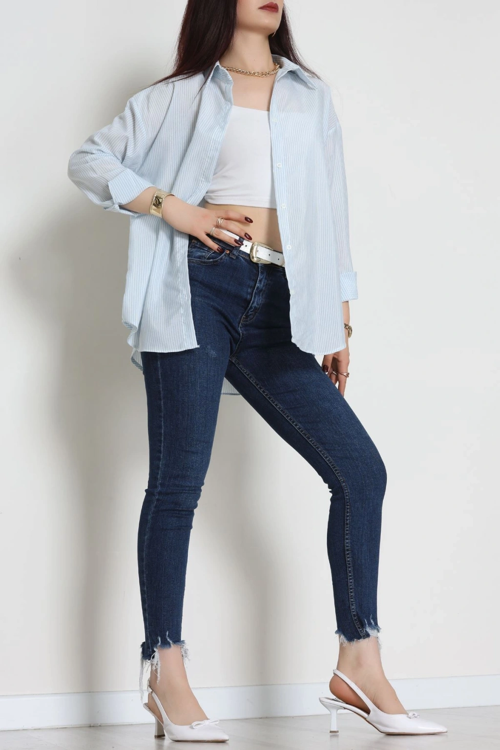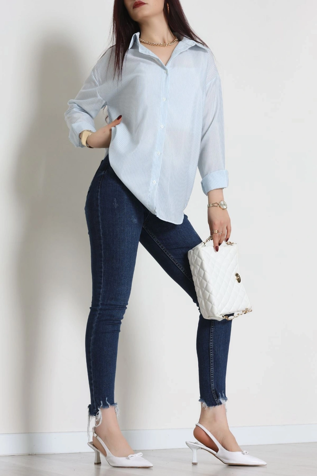 # Konforlu Bebemavi Çizgili Oversize Gömlek ## Şık Tasarım ve Rahat Kalıp Gündelik şıklığınızı tamamlayacak **bebemavi çizgili oversize gömlek**, pamuklu dokusu sayesinde gün boyu hafiflik ve ferahlık sunar. Bu parça, %80 pamuk ve %15 polyesterin dengeli karışımıyla hem nefes alabilirlik hem de uzun süreli dayanıklılık vaat eder. **Salaş kalıbıyla** hareket özgürlüğü sağlarken, ince çizgili deseniyle modern ve havalı bir duruş sergiler. Yumuşak kumaşı ve rahat kesimiyle öne çıkan bu tasarım, %5 elastan içeriğiyle ekstra esneklik sunarak gün boyu konforu garanti eder. Hafif yapısıyla dört mevsim kullanıma uygun olan bu **çizgili oversize gömlek** modeli, gündelik şıklık arayanlar için ideal bir seçenek oluşturur. Estetik görünümü ve kullanışlılığı bir araya getiren bu ürün, bütçe dostu fiyatıyla dikkat çeken bir fiyat performans ürünüdür. Hemen sepete ekleyin.