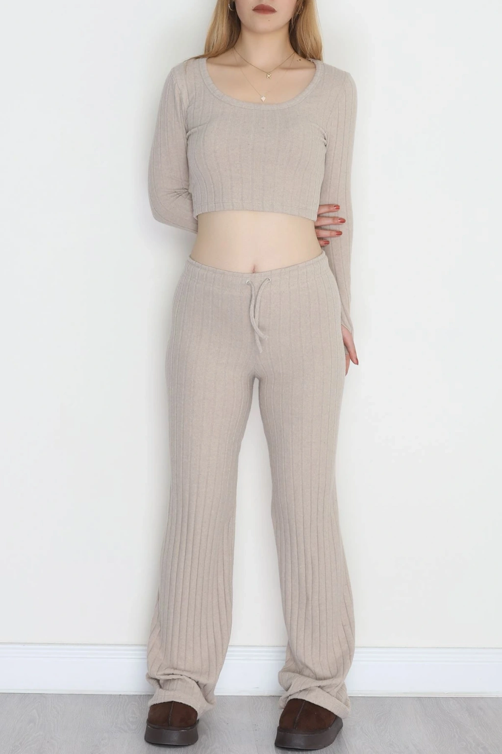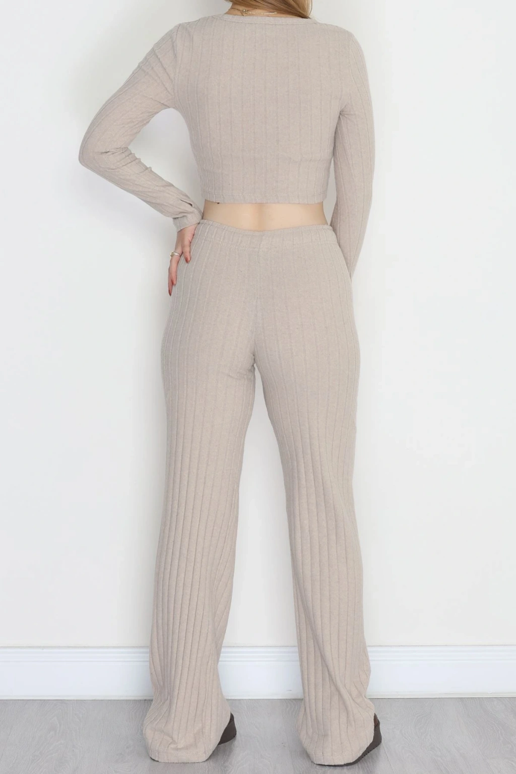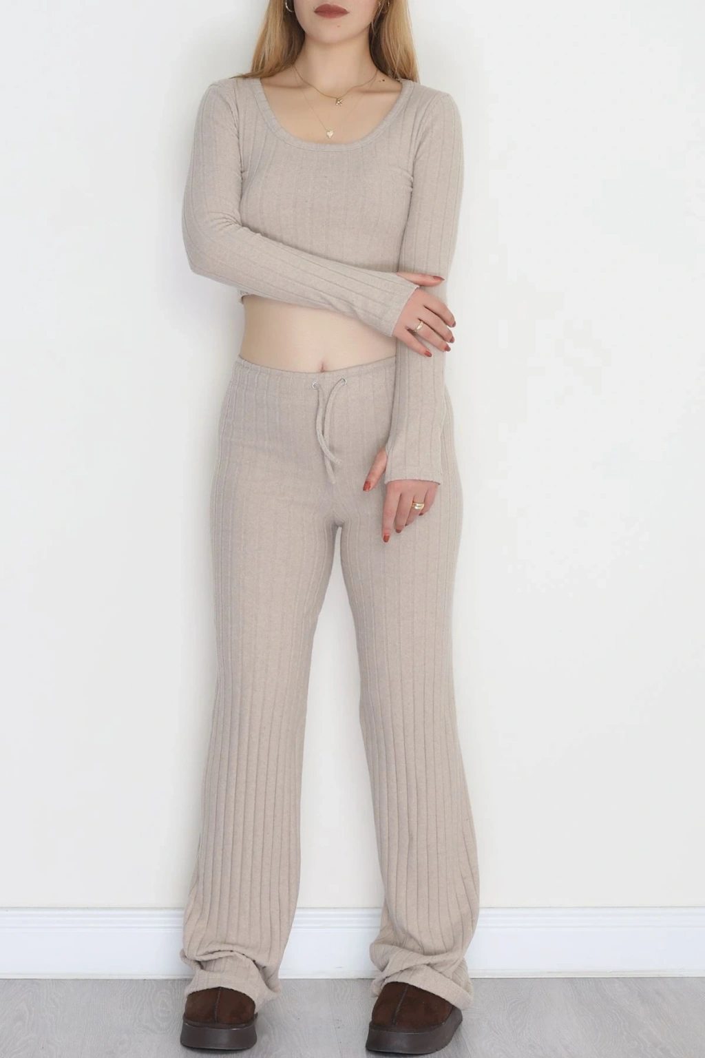 Parmak Geçmeli İnterlok Fitilli Takım Bej - 90959.1748.