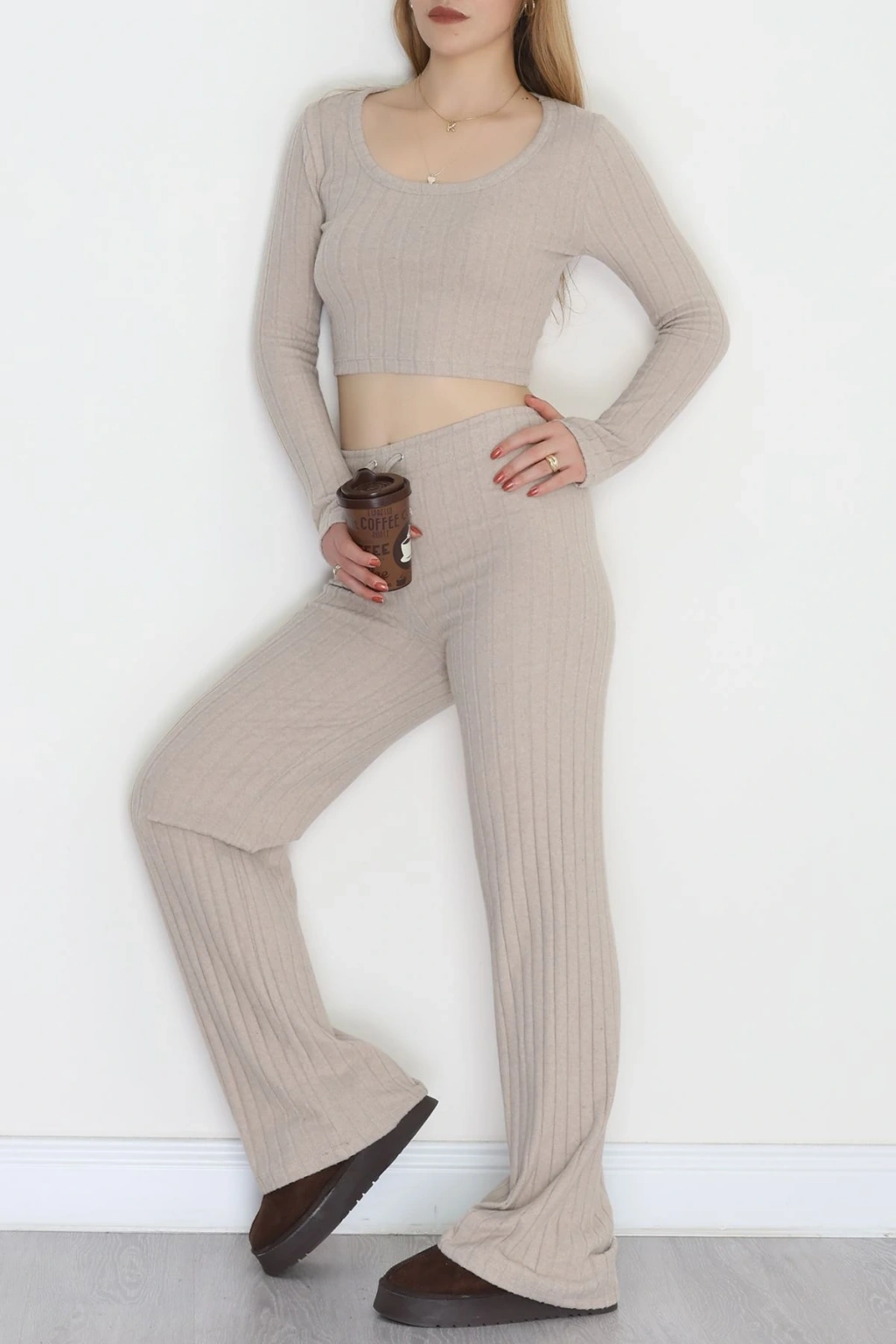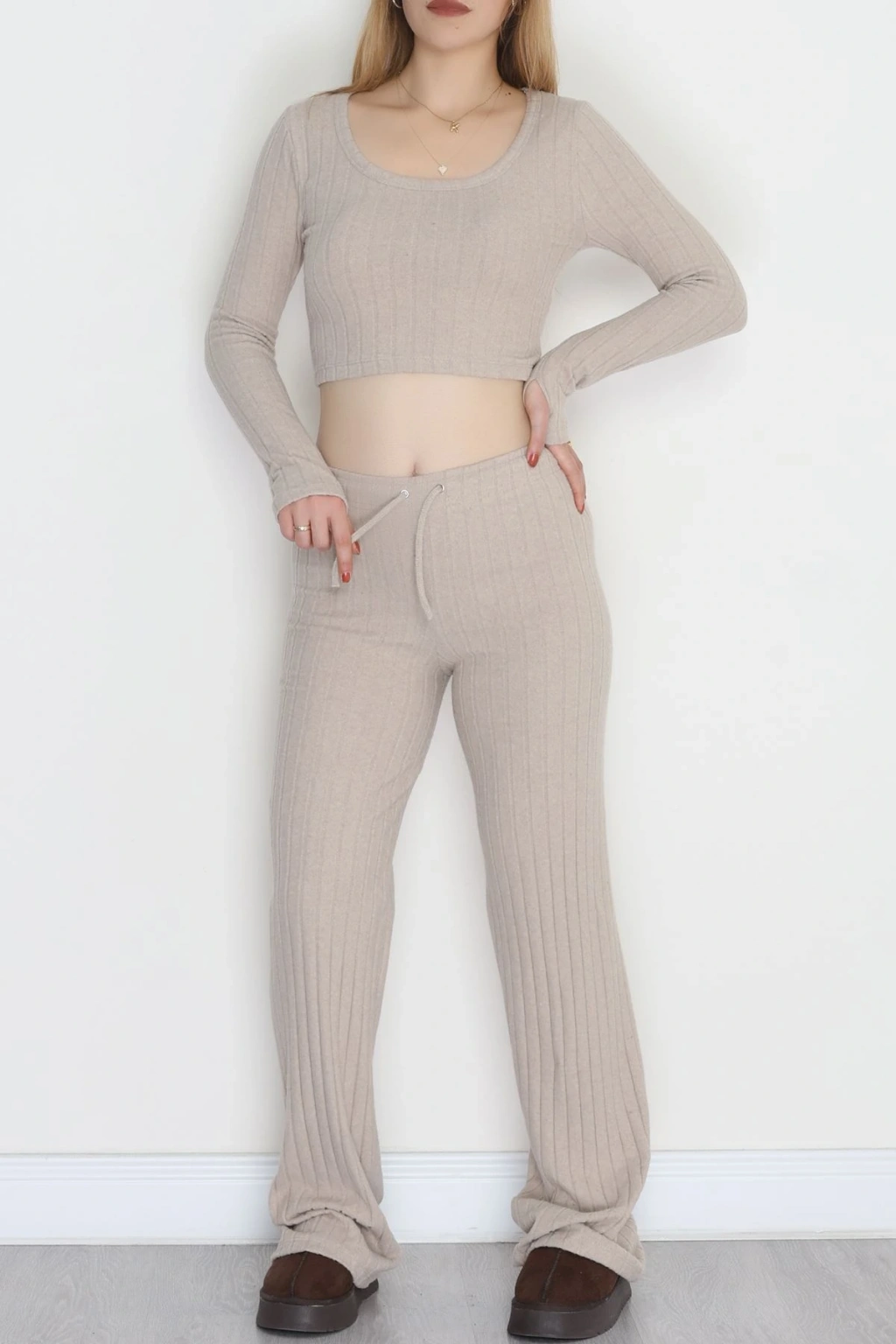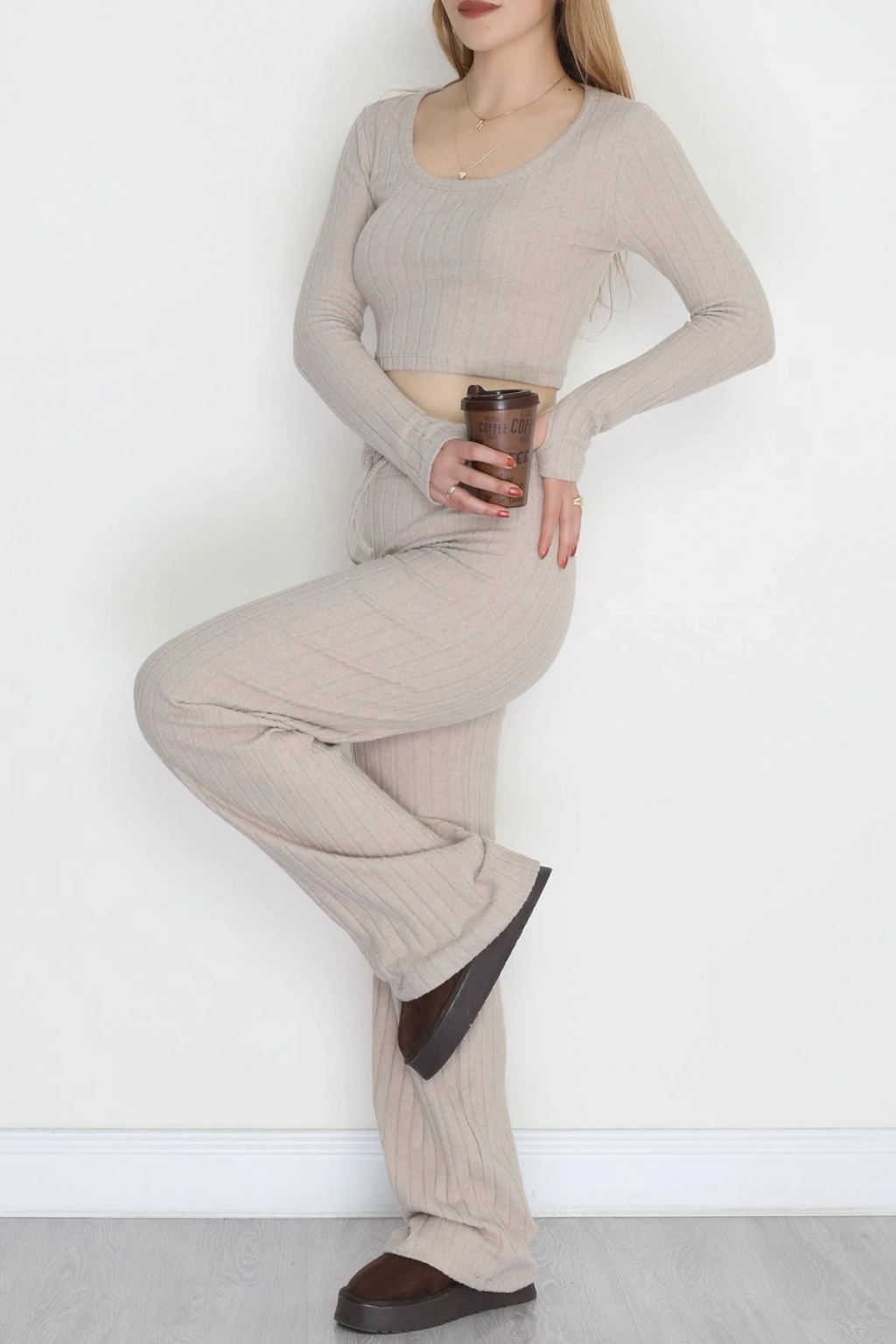 Parmak Geçmeli İnterlok Fitilli Takım Bej - 90959.1748.